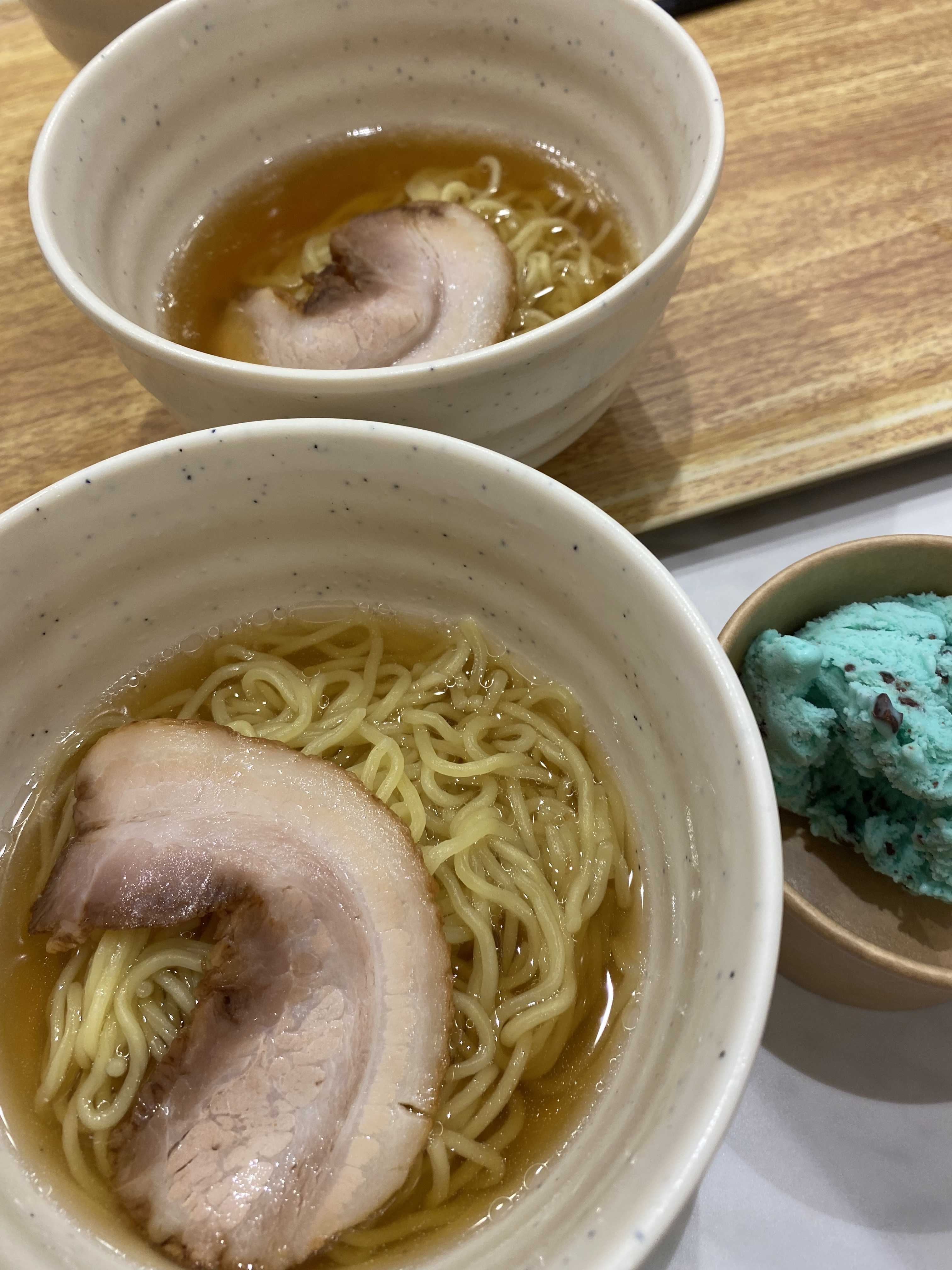 夜食のラーメンとアイス