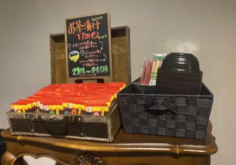 お正月だけ?いつもある?フロントに夜食のお茶漬けもありました。
