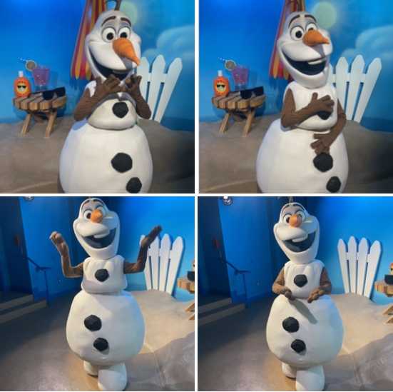 アナとエルサのグリーティングの後、花子も電池切れ💦 電池切れした次郎と花子をなんとか起こして、ソアリンへ。