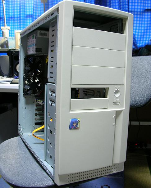 だいぶ長い間更新してませんでしたね。というわけで、この間にあった出来事をいくつか。まず、メディアファイルサーバー用のPCを一台組みました。スペックCPU:Celeron 326 2.53GHz(Prescott)M/B:Foxconn 945G7MDMEM:UMAX DDR2-667 1GBVGA:GIGABYTE GeForce PCX5300HDD:250GBケースは近所のショップで980円でした。keyブランドのゲーム、Kanonの名雪のエンブレムシールが貼ってあります。エンブレム、しかもKanonのシールですから、結構古いケースかもしれませんね。まだ発展途中なので、データ保護のRAID等は組んでいませんが、いずれはLinuxで本格的に自宅サーバーに仕立てたいと考えています。で、8800GTのクーラーを換装。リファレンスクーラーではいささか頼りないので、2スロット外排気のZAVに交換。メモリシンクが若干ずれますが、まぁ気にしないで装着。室温20度、アイドル43度、シバキ56度と非常に安定して冷えています。最近はワイヤレスのマウスとキーボードが欲しくてたまりません。