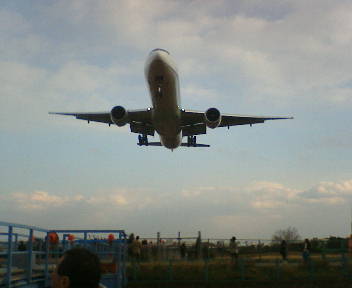 今日は、家族と買い物に行きましたが、帰りにあるところへ立ち寄りました。千里川土手です。伊丹空港の傍には、新に公園もできて、いくつかのポイントで間近に飛行機を見る事ができます。ただ、千里川土手は、その中でも最も間近で見る事ができるポイントです。(全国的にも珍しいと思います。)飛行機がこちらに向って落ちて・・・いや、降りてきました。飛行機の腹が丸見え。子供も、結構ビビッてました。もう少し、暖かくなったら、立ち寄ってみては如何でしょう?かなりの迫力ですよ。