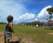 うちの家庭はボブがアメリカ人で私が日本人なので子供達もそれは素晴らしい「バイリーンガル」になる予定が、、、長男は見事に日本語しか話しません1才3ヶ月から1年間ほど日本の保育園に通っていた事もあり、日本語・・・でもなく沖縄在住のためしっかりと「うちなー口」を話します。バイリンガルならぬトリプリンガル??です。例えば・・・例1)近所をリンゴのマークのトラックが通り過ぎると~、「マミー!apple どこに?」(「りんごのトラックはどこに行くの?」と聞いてるのです)例2)次男がTVを近くで観ていると「back up!!」と、ここは何故か英語で。。。しかし次男が無視をしていると「back up と 言っている」としっかりウチナー口で『いる』を強調して言うのです。しかしボブの英語に対して、答える日本語は当たっているのでどうやら英語も理解しているようなのです。しかも、たまにボブの英語が早すぎて私が「????」状態でもその英語にしっかり答えているので、どうやら英語の理解力は私よりも上のようですこんな日本語ペラペ~ラになっていく長男に最近ビビってきたボブは幼稚園はインターナショナルに入れてくれと言ってきました。そりゃそうだよなー。朝起きて「ダディー!あっち行って!」と言われてるのに意味が分からず「ナニ?I have no idea what are you saying but sounds cute!!」って 「あっち行って」の発音が可愛かったので「おいでー!」みたいな意味だと思ったとの事(後でのボブ説)妙に喜んでいるので これは分かってないな・・・と意味を教えると「」状態のボブでした。。。かわいそうに。。。はたしてうちのチビ達はバイリンガルになるのでしょうか??ちょっと不安な今日この頃です