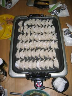 昨夜はお友達夫婦&友達1人&アメリカ人1人&うちの家族4人で餃子ぱーてぃーをしました。80個の餃子をホットプレートで一気に焼き、大人6人&2歳半児でペロリ!「もう苦しい~」と言いながら2ndラウンドで豚肉を焼肉スタイルで焼いて、またペロリ!・・・という分けにはいかず最後はお互いに優しい心で譲り合いをしているように見せかけて、押し付け合いをしていました食後は息つく暇もなく、麻雀に突入。ボブに説明されながら半無理矢理アメリカ人の彼も参加して、楽しいひと時となりました。