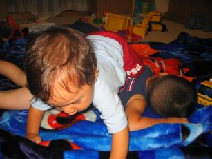 最近次男坊が歩くようになり 2歳半の長男と11ヶ月の次男はよく喧嘩をしています。11ヶ月も負けていなくて自分が遊んでいるものを長男に取られると「うぎゃー!!」と叫んで取り返しに行きますそれを無視して長男が奪ったおもちゃで遊んでいると後ろから首根っこをつかんで 長男を投げ飛ばしている次男。二人目のパワーってすごい。。。と観察している母です。