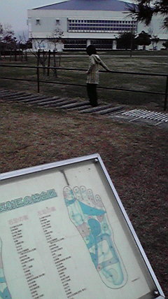 裸足で石の上を歩いて、足裏のつぼを刺激する場所です。