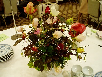 厚生年金会館、薔薇会の新年会に出席しました出席者は39名 テーブルの中央に、この日のために副会長さんの家の庭に残してあった薔薇が生けられていました6テーブル有りましたが、自分の席とお隣の席のスイートピーを写しました会長の祝辞がありました、会長さんは、鼠年で今年84歳になられますがお元気で、薔薇を咲かせています最初にお鮨と御刺身が出ましたが、写し忘れです 食事後ビンゴゲーム等で遊びました女性の方が酔われて、進行中に大きな声で騒いで見苦しいと思いました