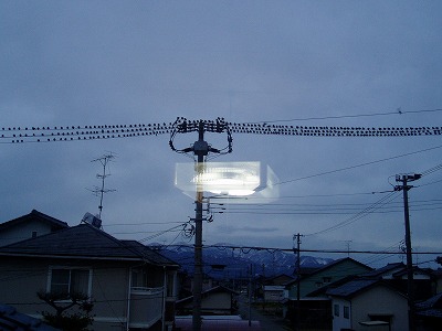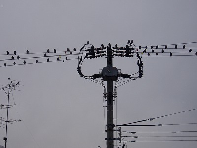 昨日の夕方5時頃、二階の部屋にいると鳥の鳴き声が聞こえてきます又ムクドリだと思って障子を開けませんでしたが鳥が騒いでいるようなので、障子を開けて!最初に写した写真が部屋の電気が写ってしまったので電気を消して、もう一度同じ場所を写そうとしましたが電気を消した途端、パッと飛び立ちました 今回はとても数えられませんでした