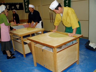 男女共同参画支援会議の新年パーティーに出席しました市長、市議会議長さんの挨拶がありその後パーティーが始まりました蕎麦打ちの名人が来て、打ちたての蕎麦をいただいたり豚汁、おでん、ぜんざい、コーヒー等の店が並びましたテーブルに並べられたチューリップと桜草の花会場から雪が降る外の景色を撮りました