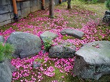 今年は、山茶花花が沢山ついて、でもご覧のとおり花びらが散って、掃き掃除をしても今日も山茶花の花びらの掃き掃除が待っている