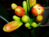 君子蘭の蕾が膨らんで、赤く染まっている後数日で開花になりそう朝急いで写して、ピンボケに成った6鉢の内、5鉢に蕾が付いているので、次々花が咲きそう