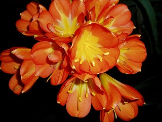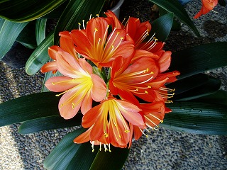 待ちに待った、君子蘭の花が咲きました君子蘭の鉢は6鉢の内5鉢が咲きました夏場の葉焼けに気をつける事や、霜にあわせない事を守る他は手がかかりません