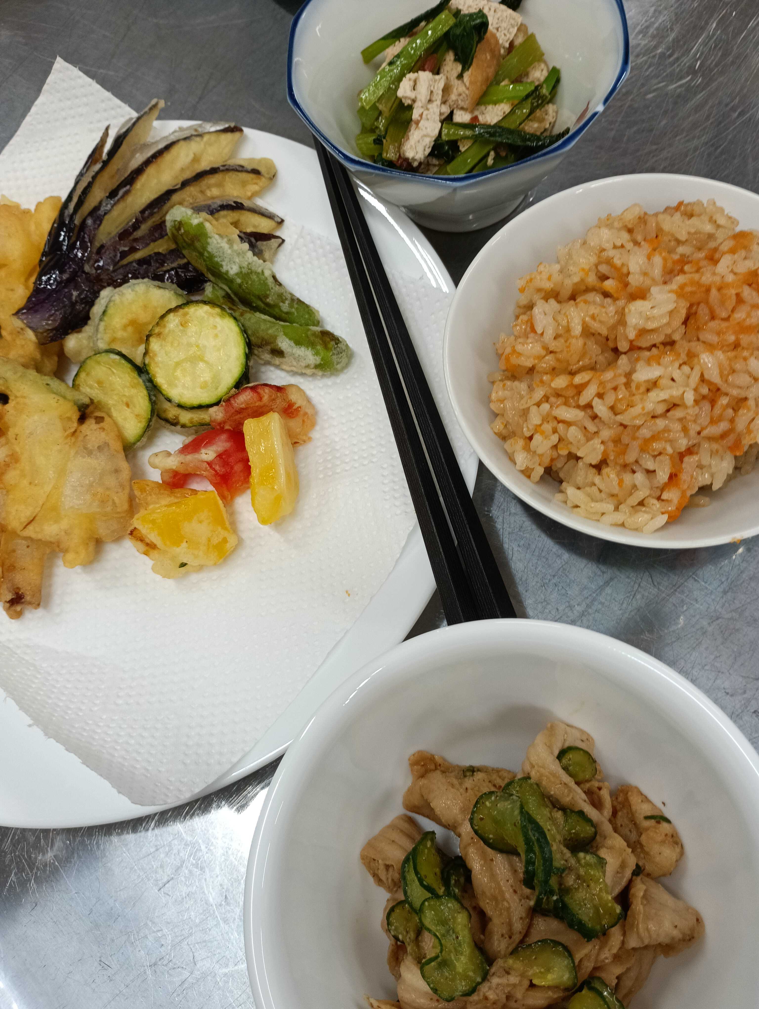 毎月第二土曜日の午前10時から12時迄、コミセンの料理室で料理の研修でしたご飯はおろし人参ご飯メイーンは彩爽やか 野菜の天婦羅コロコロ玉葱と鶏肉の洋風かき揚げ麩のからし和え小松菜と中揚げの炒め物でしたご飯はすりおろした人参を使い、ほうじ茶で煮るのですがお茶パックを入れましたコロコロ玉葱と鶏肉の洋風かき揚げは、鶏ササミを使いました玉葱の他にさやいんげんを使いました左側に半分隠れていますが小麦粉の中に粉チーズを入れ混ぜ油で揚げています麩のからし和えは郷土料理です 練りからしを練って辛くなる様に器を被せます野菜の天婦羅は茄子、ズッキーニ、パプリカの黄色と赤シシトウが入っています天つゆと大根おろしを添えました簡単な料理だったので、帰りは11時半頃になりました何時もより1時間早く終わりました手術を受けた友達の電話が掛からないので心配でこちらから連絡を入れても出てくれないので、用事があるので電話をお願いしますをチェックして置くと19時半頃電話が入り22日に退院するそうです まだ痛みが有るそうですが退院に成りました 30分位話をしました部屋にいた人が皆さん退院された事等を話してくれました痛みが有るけれど早く家に帰りたいと言っていました
