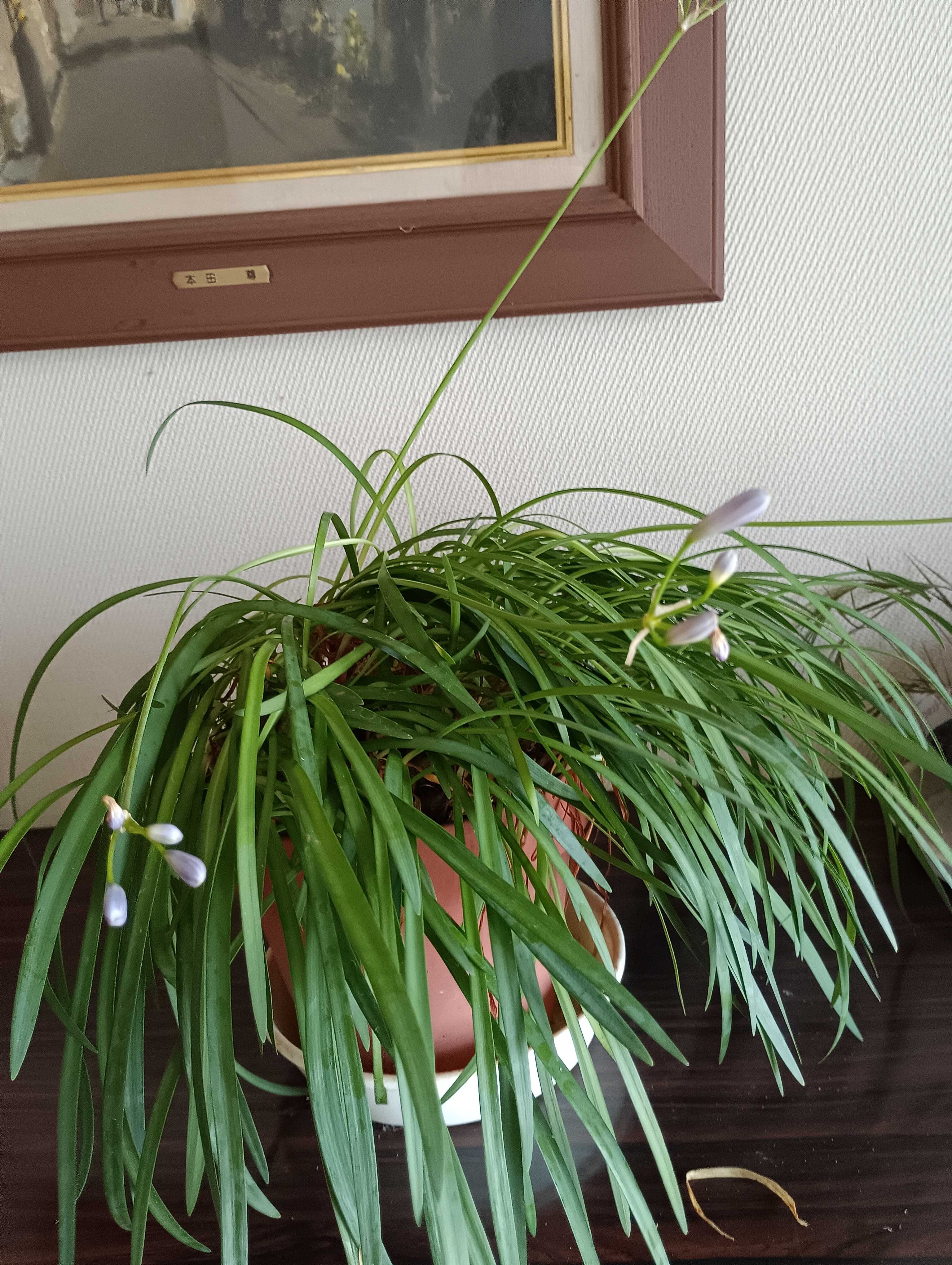 今日の畑仕事は、オクラの苗の植え替えですオクラの種を頂いて蒔いたら、沢山苗が出来ました畑友さんに届けると、喜んで貰って頂けましたが大きなオクラが出来ていました もう直ぐ実がなりそうです私の苗は数センチですが、植え変えれば育つでしょう種は大袋でした 種を蒔いて全部芽がでましたお隣りのオクラは芽が出ていない場所が出来ているので苗を貰って頂こうと思います朝の仕事は南瓜の掛け合わせです畑仕事を孫に手伝って貰ったら、雌花も花の部分を踏んでしまいましただから南瓜は数個育っていますが場所を取り過ぎです胡瓜と茄子を採りましたピーマンとシシトウの育ちが悪いので、追肥をして土を掛けました蔓無しインゲンも棒をさし、倒れていたインゲンを起こして追肥ですついでに、茄子や胡瓜にも追肥しました5時半から始めて7時半迄、草抜きと追肥とオクラの苗の植え替えで終わりました 7時半になると暑さが厳しく成りますアガパンサスのミニの鉢植えです 何年も小さな花が咲いています
