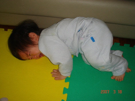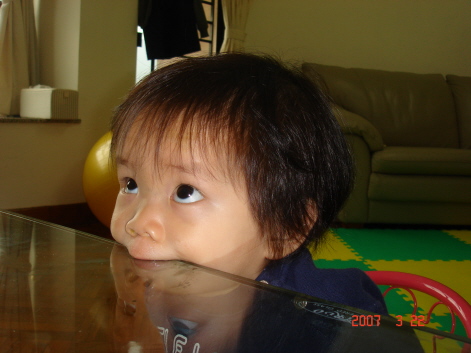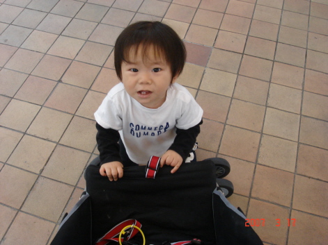 ケイはとっても食いしん坊です。「まんま!まんまぁ~」が「おはよう」の代わり。で、すぐに要求を飲んでもらえない場合はこんな感じ↓ケイは、自分の要求が通らないと何処でもこんな感じでジタバタ先が思いやられますやっと朝ごはんにありつけて満足したかと思いきや。。。皆より早く食べ終わったケイは、またまた「まんま」攻撃!こんな時は「のり」を持たせておくのが効果的です。大満足!!