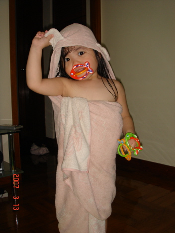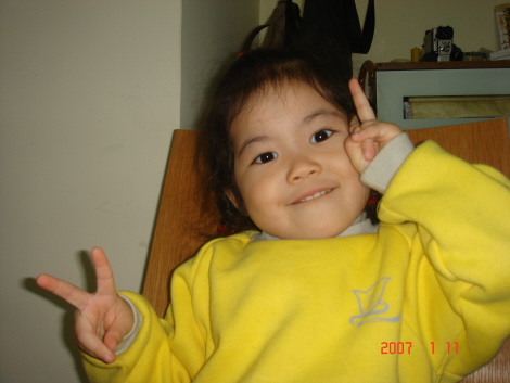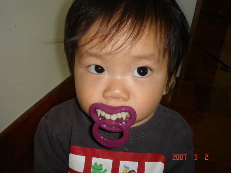 昨日から1ヶ月ぶりに幼稚園に通い始めたヒヨ。先生の話によると、昨日は「ママ~」と言って泣いていたそうです。で、今日は幼稚園でシューズに履き替える時点で「ママぁ~」。しがみ付いて離れようとしないヒヨと引き離されるのは、私も辛かった~今日は園ランチの日だったけれど、キャンセルして12時にはお迎えに行きました。ミュージッククラスの為、3時に再び園に送り届けた時もやっぱり泣きじゃくっていました。一ヶ月のブランクは、ヒヨにとってやっぱり大きかったかな。。。関係ありませんが。。。モンスターケイ君。でも、やっぱりこの手は欧米人の子が似合うんだろうなぁ~。