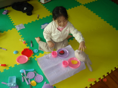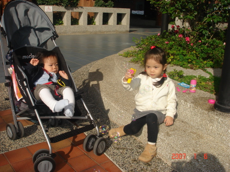 今日は朝からずーっと雨が降っていました。せっかくの週末(パパ在宅&全員元気)なのに、家にいるのはもったいない!という訳で、近所をお散歩しました。お昼はそのままパシフィックコーヒーで軽めのランチ家の中にいると、ケイはヒヨのおもちゃになっているようで。。。夕飯のちゃんぽんを、ヒヨもケイもおりこうにたくさん食べたので、ご褒美に夜のお散歩。スターバックスでケーキを食べた後、モールの中を散々歩きました!大声で『ずいずいずっころばし』を歌って踊るヒヨ。「かわらのねずみがこねくってちゅぅ♪」惜しい!!ケイもおおはしゃぎで一杯歩いたので、今夜は愚図ることもなく、グッスリです