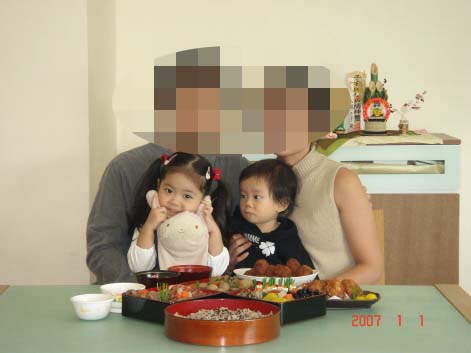 今年も一年お世話になりました。来年もどうぞ宜しくお願いします!昨日、朝から激しい頭痛が続いていた私。なんかムカムカするな~と思いながら、お昼に御節の材料を買いにスーパーへ行ったのですが、帰宅するなりダウン!夜中まで激しい嘔吐が続き「みんなには悪いけど、年越しはドンベエかなぁ」と半ば覚悟していましたが、何とか今朝から台所に立つことが出来ました。29日から黒豆を仕込んでおいたので、何とか御節料理も今日一日で目処がつき一安心毎年「○日までにコレやって、○日にアレ作って...」などと真剣に計画を立てていたけど、黒豆さえ仕込んでおけば、あとは一日でもできるもんなんですねちょっといい発見でしたケイは今年まではお蕎麦は我慢!そうめんで年越しです。「さぶちゃんオオトリすごかったねー♪てんどうよしみもすごかったねー♪」とヒヨが電話で言っていた「さぶちゃんのオオトリシーン」がコレ↓「ほら!さぶちゃん撮ったんだ♪」と得意気に見せてくれました今年はケイが生まれ、ヒヨが幼稚園へ通い始め、何かと慌しい一年でした。大変だったけど、その分楽しいこと嬉しいこともたくさんありました。来年も幸せな年にしたいです<本日就寝前の会話>話の流れからこんな会話が始まりました↓パパ:「パパかっこいい?」ヒヨ:「....」パパ:「ねぇ?パパかっこいい?」ヒヨ:「....」パパ:「パパかっこいい?」ヒヨ:「....パパ気に入ってる」若いのに...3歳なのに...
