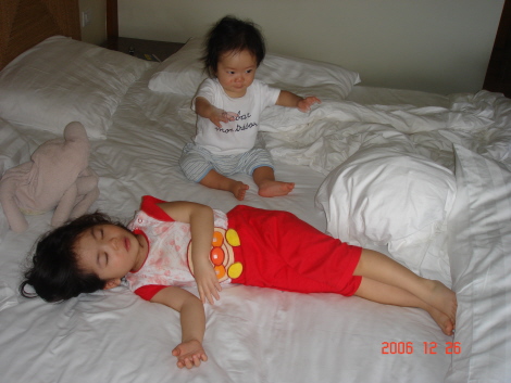 無事に戻ってきました。ケイが飛行機で愚図らなかった分、行きよりは幾分楽でした。しかし。。。ちびっ子2人連れての海外旅行は体力的にも精神的にも結構大変だってことが今回の旅で分かりました。特に子供達がここのところ病気がちだったので、知らず知らずの内にかなり気が張っていたように思います。子供達がもう少し大きくなるまでは、ディズニーが一番良いかもね~というのが、私達の正直な感想とっても楽しかったんですけどね。。。セブ。。。あと1年ぐらいしたら、また是非行ってみたいところです帰りの飛行機にて。何故ケイがこんなにはしゃいでいるかと言うと。。。斜め後ろに座っていた4、5歳ぐらいの欧米人の女の子が構ってくれるのが嬉しくてしょうがないのです