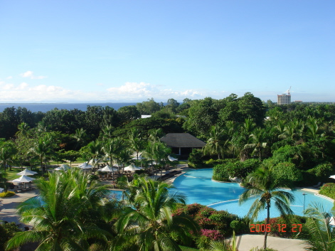 今日はとてもいいお天気でした。部屋からの眺めはこんな感じ↓朝は毎日レストランにてバフェ。お粥もあるので、ケイにはゆで卵やポークビーンズなどを混ぜてあげています(本人はパンのほうが好きみたいだけど)。朝食後、ヒヨがどうしても欲しいと言って買ってもらった浮き輪とゴーグルを持って、プールへGO!日差しが強くて、日焼け止めたっぷり塗っていても結構焼けてしまいました(特に私)が、とっても気持ちよかったですランチは、プールサイドでオーダークラブサンドウィッチとフィッシュ&チップスです。セブでの夜も今日が最後なので、ホテルのビーチにあるちょっとオシャレなグリルレストランに予約を入れました。とっても美味しかったです。ヒヨはこのレストランのバーで、臍だしサンタの格好をしたウェイトレスのお姉さんを見つけ、大喜びで駆け寄り「メリークリスマス♪」と言っていました。たとえお臍を出してても、たとえどんなにケバくても、子供はサンタの格好をしている人に親しみを覚えるんですねさぁ、明日はいよいよ帰国(?)です。ヒヨは喜んでいるけど。。。