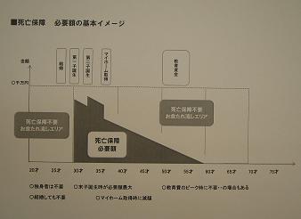 子ども大学生で、パパの死亡保障不要・・も。メール顧問会員のSさん(30代) (相談:ライフプランニング)家計の現状診断を終えて・・、今・・個別の相談に入ってきています。メールをいただきました。 お世話になります Sです 生命保険の解約、新規見積の手続き中です 生命保険の解約金、主人分約〇〇〇万、 私の分は約〇〇万円ぐらいとのことでした 新規見積依頼の中で、 夫:〇千〇百万の死亡保障のみ 妻:〇千〇百万の死亡保障のみ 逓減定期、家族収入保険それぞれで 見積を取ってみます それぞれ保険期間はどれぐらい、 かければいいものでしょうか ピークは子供の教育費が一番かかっている 主人が〇〇歳ぐらいと考えるのか 今現在を最大と考えるのでしょうか 教えてください よろしくお願いします質問を整理すると・・大きく2つ・・ですね。1 保障期間はどれぐらい?2 保障額のピークはいつ?生命保険(死亡保障)は、残された遺族の生活費を確保するために加入して備えます。以下を踏まえて・・考えましょう。・本当に必要な人だけが加入 死んでも遺族が経済的に困らない人が加入。 そんな人の分の保険料を払っていたとすると、 ドブにお金を捨て続けているおバカさんです。 ( 子ども・独身者・専業主婦・・等々 )・必要額は期間の経過とともに減る 家族(母子等)の以後の生活費、 妻の一生の生活費、子どもの教育費、 住居費、車・レジャー費、等々を足し算。 これから「用意できるお金」を引きます。 ( 今よりも10年後、20年後・・と減る )で、まず・・1、当事務所で色々な方の現在・10年後・20年後等々の「死亡保障必要額」を算出しています。個別の家計事情でまったくバラバラな結果が出てきますが・・、15年後や20年後に必要額がゼロ! ・・という方が実は大半です。なので、将来に向けて保障額が減る・・カタチで言えば、三角形の商品が理想的で、その保険料もメチャクチャ低額!・・助かります。( 逓減定期保険や家族収入保険 ) ※数社が扱っています。逓減定期保険は、期間20年で勧められる商品のようですので、そのままの契約でいいと思います。( 必要額ゼロ!の時期がきたら中途解約する )それから・・2、説明した通り、期間の経過とともに必要額は減ります。5年後、10年後、15年後、・・と遺族を保障する期間が短くなるから当然・・です。子どもが大学に通って・・一番お金がかかる・・そんな時期でも、必要保障額はかなり小さくなります。( 大学生がいながら必要額ゼロ!・・もザラです )したがって、一番・・必要保障額が大きい時期は、「末子が誕生した時!」 ・・です。( そこから先の期間が長いから、当然・・です )下の絵・・私が説明用に使用しているものです。字が小さくて見にくいですが、タテ軸が金額、ヨコ軸が年齢。黒い・・ほぼ三角形の部分が「必要保障額」です。 ・独身はもちろん、結婚した時期は死亡保障不要!・子どもが生まれて初めて必要に・・。・2人目(末子)が生まれた時が必要額のピーク。・マイホーム取得時に減額。(住居費分)・子どもが大学生の時期は少額でOK。(または不要)長方形の死亡保険に数十年・・加入していれば、大量にお金をたれ流す・・おバカさん家計。Sさんのライフプランニング(生活設計) 進行状況 1 ヒアリング 家族状況・家計収支・資産・職歴ほか 2 家計の現状診断 診断資料(小冊子) 問題点把握 3 生活設計 シミュレーション 設計資料(キャッシュフロー表ほか) 4 実行支援 商品選択や処理(金融商品・保険・ローンほか) 住宅・不動産・相続等の段取り・手続き 5 事後チェック 計画の実行・・進行状況、必要に応じた修正《 消費者の方へ 》 質問・感想など、気軽にどうぞ。できるだけ早めにお返事します。 《 業界の方へ 》 コメントを頂く場合は所属企業・団体名、所属部署、姓名を名乗り、勇気を持って、正々堂々と お願いします。私は、個人が特定できる状況で発言しています。勇気もない無責任なコメントは、固くお断りします。
