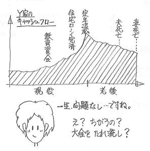 大量のお金をたれ流し続けて・・います。メール顧問会員のYさん(30代) (相談:ライフプランニング)昨日・・家計の現状診断資料が完成しました。さっそく、メール添付で送りました。( 18ページに渡る資料・・です )Y家は2馬力です。2馬力の家計は・・だいたい、老後は安泰になります。理由は、公的年金の受給レベルが高いから・・です。2馬力の家計で危機的な局面が現れるとすれば、教育費が集中的にかかる時期・・です。その原因を引き起こす要因は・・、・老後資金準備に夢中になるケース。 お金を老後へ送りすぎるケースです。 金融機関の言いなりで、個人年金の積立て等を せっせせっせとやっていると・・、 定年前の時期に・・教育資金が不足! そんなケースを時々見受けます。 元々・・老後は潤沢なんだから、 教育資金が必要な時期の方こそ しっかりケアしなければなりません。・住宅ローンの繰上げ返済に夢中になるケース。 借金はしない方がいい。 借金をしたら、できるだけ早く返した方がいい。 ・・というのが正解です。 ムダな利息はできるだけ払わない・・が、正解。 ですが・・、 必要な時期にお金がない・・状況になるまで やってはいけません。 資金不足に陥っている、陥りかけている、 そんな家計が時々・・見受けられます。 きちんとケアした上で、繰上げ返済を行ないましょう。・・で、Y家のキャッシュフローは・・?教育資金がかかる時期の危機もなく、老後も安泰で・・順調なキャッシュフローになっています。もう・・何の改善点もなく、このままでいいです。・・とは、いきません。生命保険の加入状況に、大変な問題があります。ご夫婦それぞれの「死亡保障 必要額」をしっかり計算してみました。 ・・その結果は、・夫は、今も将来も・・まったく不要。 加入保障額 : 4,710万円 ( もったいない・・ )・妻は、現在で810万円、10年後は不要。 加入保障額 : 2,280万円 ( もったいない・・ ) ※「子供が小さいうちでも、夫の死亡保障は不要!」 という場合もある・・ということを知っておいてください。 何でもかんでも3,000万円!・・とかいうドンブリ勘定 では、大金をドブに捨てることになります。ほかにも色々加入していて・・年間保険料は、49万円!( 異常!・・です )現在の保険を継続すると・・払う保険料総額は、1,570万円!( 異常!・・です )その内・・捨てるお金(保障コスト)は、1,160万円!( もったいない・・ )Y家の場合は、必要なのは妻の死亡保障のみです。それも・・小さな金額です。三角形の保険で対応すれば・・保険料は2千円/月?家族の生命保険を徹底的に清算!すれば、年間保険料は確実に今の10分の1以下になります。あとは貯蓄に廻せます。貯蓄に廻る分が仮に40万円としても・・30年では、40万円 × 30年 = 1,200万円!大きい ・・です。さらに・・余裕のキャッシュフローになります。Yさんのライフプランニング(生活設計) 進行状況 1 ヒアリング 家族状況・家計収支・資産・職歴ほか 2 家計の現状診断 診断資料(小冊子) 問題点把握 3 生活設計 シミュレーション 設計資料(キャッシュフロー表ほか) 4 実行支援 商品選択や処理(金融商品・保険・ローンほか) 住宅・不動産・相続等の段取り・手続き 5 事後チェック 計画の実行・・進行状況、必要に応じた修正今日の佐々木FPメール顧問会員のKさん(30代) (相談:ライフプランニング)家計の現状診断の資料作成・・、必死にがんばりましたが、連休前の完成・・は、できませんでした。・・ザンネン。連休明けに完成させます。Kさん・・ゴメンナサイ。佐々木FP・・、連休に入りました。《 消費者の方へ 》 質問・感想など気軽にどうぞ。できるだけ早めにお返事します。 ( 具体的な質問の際は、できるだけ詳しい情報提供を )《 業界の方へ 》 コメントを頂く場合は所属・姓名を名乗り、私同様・・個人が特定できる状況で、正々堂々とお願いします。読者の参考にもなるので、敬意を表してきちんとお返事します。( 匿名コメントは削除 : 無駄な手間隙はご遠慮下さい )