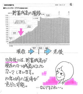 デブ人生の損得、興味深いテーマです。FP業務に大いに関係があります。タイトルにひかれて、つい・・本を買ってしまいました。7日連続 真夏日!の盛岡。 (事務所裏の北上川河川敷)プレジデント50plus ( フィフティプラス )・・という雑誌の特集タイトルが・・、『デブは1億円 損する!』書店で目にとまり、衝動買い・・しました。ファイナンシャル・プランナーの業務、ライフプランニング(生活設計)におおいに関係がありそうな興味深いテーマです。肥満人生(メタボ地獄)を、一般の人生との比較で説明しています。無駄な飲み食い、病気、介護、出世の遅れ・・〆て大赤字の人生の実態を・・。〇生活・衣服がすぐ破ける・セール品がない・底なしの飲食費一日700円の余分出費が30年でも、-766.5万円!〇仕事・50才で脳梗塞で下半身麻痺・糖尿病放置で両足切断・妻 介護専念で離職志半ばでの無念の離職。8年分の給与がゼロに -5,200万円!〇病気・高度医療で保険が利かない・「将来がない・・」 離婚多発一か八かの薬投与も、妻は慰謝料請求-1,500万円!〇老後・慢性疾患で長生き・受け入れ施設僅少で個室へ有料老人ホーム 20年入居で-5,064万円!合計 : -1億2,530万円!!支出増! 収入減!おデブさんほど収支が悪化する人生になりそう・・です。生活設計の資料を作る際にはその人の肥満度合いを考慮する必要性をおおいに感じました。自分の家計をかえりみない人や、業者任せで自分で考えない人を、『おバカさん』呼ばわりしてきました。『お金たれ流しを放置する人』 = 『おバカさん』この・・『おデブさん』は、生活設計上のキーワードになりそう・・です。『お金をたれ流す体の人』 = 『おデブさん』キャッシュフロー表に大きく影響しそう・・です。ヒアリング・シートの質問項目、増やそうかなぁ・・?たとえば・・肥満度合いを下記から選択してください。1 本格メタボ 2 プチ・メタボ 3 フツー・・とか。身長と体重を記入してください ・・とか。・・って、冗談・・ですけど。そういえば・・今までの顧問会員に、いわゆる・・おデブさんはいなかった・・なあ。 ※メール顧問会員は別。 会うことがないメール顧問会員は、 おデブさんかどうか知らずに (^^ゞ アドバイスや支援をしています。 提出資料に「写真」はありません。どうしておデブさんがいなかった・・んだろう・・?そもそも・・おデブさんは、生活設計というような発想をしない?家計や将来の細かいことに頓着しない?料金を払ってFPに相談・・なんてしない?一般の顧問会員と「おデブ顧問会員」では、生活設計の手法がちがってくるんだろうなぁ・・・・なんて想像したりしています。生活設計は、一般的には・・「支出を減らし、収入を増やす。」・・ことで完結します。おデブさんの生活設計は・・「減量、ダイエット、ムダ肉退治」・・で完結させます。目的は同じでも、手法はまったく異なります。( 本当に・・まったく ) (^^ゞこの本、昨日・・買ったばかりです。 ( 880円 )1億円・・損しないためのきっかけに、880円の支出。悪くない・・と思います。 オススメ・・します。●メール顧問会員のKさん(30代) (相談:ライフプランニング)顧問会員になったばかりで、ただ今・・ヒアリングシートと格闘中・・です。メールをいただきました。ヒアリングでの質問です。 ※は、佐々木FPの回答。 佐々木様 〇〇県のKと申します。 先日ヒアリングシートを頂きました。 そこで質問があります。 (お電話できなくて申し訳ございません。 佐々木様がいらっしゃる時間に 子供が昼寝をせず、電話ができません。) 必要書類について ・源泉徴収票・・・今年の初めに確定申告を した際に原紙を提出してしまいました。 コピーをとっていないのですが、 どうしたらよいのでしょうか。 ※確定申告書の写しをください。 ・住民税特別徴収通知書・・・これは、 主人が会社から貰っているものでしょうか? ※はい。 紛失したときは、再発行可能なのでしょうか? ※紛失した場合は、いりません。 それとも変わる物が役所等で 発行可能なのでしょうか? 基礎データについて 「2」 ・収入欄の『源泉所得税額』とは、 確定申告書に記入した 「源泉徴収税額」のことでしょうか? ※はい。 ・『特別徴収税額』に必要な 『市民税・県民税特別徴収額通知書』とは、 主人の会社発行でしょうか? 紛失の際は、再発行でしょうか? ※紛失した場合は、いりません。 変わる物が役所等で 発行可能なのでしょうか? 毎日お忙しいとは思いますが、 宜しくお願い致します。今日の佐々木FP●顧問会員のMさん(40代) (相談:ライフプランニング)シミュレーションの資料作成作業。3日目の作業です。今日もご本人に電話で確認しながら・・。「行列のできるFP事務所」 資料作成の順番待ちの行列。 お待たせして、大変ご迷惑をおかけしています。 本当に申しわけありません!1 Mさん(40代):現状診断 ← 回答待ち。2 Tさん(30代):現状診断 ← 回答待ち。 (5/24到着)3 Mさん(40代):シミュレーション ← 今日