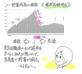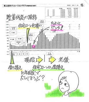 ちょっと・・グラフをいじってみたりして●メール顧問会員のKさん(30代) (相談:ライフプランニング)具体的に生活設計中・・です。( 昨日の記事・・参照 )〇生命保険の清算 夫婦ともに不要なのに加入中。〇住宅ローンの借換え 3%超の高金利ローンを返済中。〇子どもの誕生 子どもができれば人生はどうなる?メールをいただきました。 ※は、私の声。 武田様 おはようございます! 上司が会議中に 会社でカタカタとメールしています。 ※・・おい、おい。 記事にして頂いてありがとうございました! 第二子想定について、私のほうでも ちょっと頂いたグラフをいじってみたりして、 こんな場合は? では、ここをこうすれば? とやってみたりしました。 ※はい・・自分で表をいじれば、 そのままグラフに反映されるように なっています。 どんどんやってみましょう。 もちろん佐々木FPにするのとでは 訳が違うので、ざっくり・ざっくりという感じですが。 例えば、住宅ローンの期間や、出産時期、 出産までの貯蓄額、第二子誕生後は 休職期間を二年→一年にする。 ※はい・・そういうことです。 また、住宅ローンの形態や金利も、 重要な要素です。 あと、借り換え時の投入額。などですね。 ※はい、そうです。 貯蓄からあまり出しすぎると・・、 10年間ほど悲惨なことになります。 で、武田さんのおっしゃるように、 定年後の就業・・・人それぞれですが・・・ 私の場合はできればこれは避けたいところ。 それだけで、 キャッシュフローが安泰になるということで、 最後の最後の手段として取っておきます。 ※はい、夫婦が5年間軽くバイトをすれば、 老後のマイナス最大額約820万円は 軽くクリアすることができます。 第二子と、老後の資金を確保できるような 設計を考えてみます! で、キャッシュフローのいじり方なんですが、 生命保険の必要額等の理解が まだ浅いのでわからないのですが この年齢時点での最低限の貯蓄額を出して、 それ以外を繰り上げに突っ込んで、 すると、残期間がこうなって・・ というのは結構複雑ですよね。 ※・・だと、思います。素人ではなかなか・・。 ●シュミレーションでは、 繰上げ返済はキャッシュフロー自体には 組み込まないものなのでしょうか? 繰り上げをしないものとして、 貯蓄額赤字のないものを作成しておくのですか? でも、繰り上げによってがつんと減った総返済額は、 キャッシュフローに大きく影響するような・・? でも繰上げありきで成り立つような キャッシュフローではダメなのかな・・? どうなのでしょうか?御回答宜しくお願い致します。 ※Kさんの今回のリクエストが複雑過ぎました。 ( シミュレーションの要素が多かった ) ・・ので、さらに繰上げ返済も入れると さらに複雑になり、収拾がつかなくなると 思われたので、今回は省きました。 「ある項目が加わると、人生がどう変わるか?」 ・・を項目ごとに理解するためには、 「すべてをいっぺんに!」 という作業をしない方がいい・・という配慮です。 で、自分でいじってみたキャッシュフローを元に、 武田さんにこんなパターンはどうでしょうか? といった感じで確認して貰って、 じゃあこのパターンで! 最終的なシュミレーションを作って頂く。 という感じでいいでしょうか? ※基本的にはOK・・ですが、 借り変える住宅ローンについては、 その形態・融資期間・融資金利等を 吟味する作業は素人には無理です。 ローンは、その都度相談して下さい。 佐々木FP、とてもお手間のかかるお願い、 ありがとうございました。 でも、やっぱり作成して頂いてよかったです! 今後とも宜しくお願い致します! Kさんのライフプランニング(生活設計) 進行状況 1 ヒアリング 家族状況・家計収支・資産・職歴ほか 2 家計の現状診断 診断資料(小冊子) 問題点把握 3 生活設計 シミュレーション 設計資料(キャッシュフロー表ほか) 4 実行支援 商品選択や処理(金融商品・保険・ローンほか) 住宅・不動産・相続等の段取り・手続き 5 事後チェック 計画の実行・・進行状況、必要に応じた修正今日の佐々木FP●メール顧問会員のKさん(30代) (相談:ライフプランニング)現状診断の資料作成作業。佐々木FP、黙々と作業を進めて・・今日、終了できました。メール添付で送りました。●メール顧問会員のTさん(30代) (相談:ライフプランニング)現状診断の資料作成作業。今日から着手しました。長らくお待たせして申しわけありません。「行列のできるFP事務所」 資料作成の順番待ちの行列。 お待たせして、大変ご迷惑をおかけしています。 本当に申しわけありません!1 Mさん(40代):現状診断 ← 回答待ち。2 Kさん(30代):現状診断 ← 今日の作業。 (5/17到着)3 Tさん(30代):現状診断 ← 今日の作業。 (5/24到着)4 Mさん(40代):シミュレーション ←5/31 ヒアリング終了。5 Hさん(20代):シミュレーション ←6/3 依頼到着。6 Kさん(30代):シミュレーション ←6/4 依頼到着。7 Yさん(40代):現状診断 ← 6/15 シート到着。8 Mさん(30代):現状診断 ← 6/21 シ