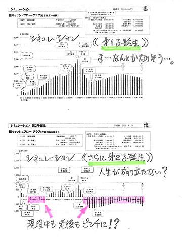 このままでは第2子は厳しいですね。実は・・何とかなるんです・・が。●メール顧問会員のKさん(30代) (相談:ライフプランニング)おととい(29日・火曜日)依頼されていたシミュレーションが完成し、メール添付で送りました。依頼されたシミュレーションは・・〇生命保険の清算 夫婦ともに不要なのに加入中。〇住宅ローンの借換え 3%超の高金利ローンを返済中。〇子どもの誕生 子どもができれば人生はどうなる?メールをいただきました。 ※は、私の声。 武田様 こんばんわ!お世話になっております。 シュミレーションの作成、ありがとうございました! いよいよこの段階にきた、とういう感じですね! こどもが、一人の場合・二人の場合と お願いしましたので、 佐々木FPは大変だったことと思います、 ありがとうございました! ※子どもの存在は、色々なところに影響を 及ぼすので、資料作成が大変!・・です。 これを・・1人の場合と2人の場合と別々に 作って♪ ・・ということなので大変でした。 もちろん、佐々木FPが。 今日から印刷したシュミレーションとまた にらめっこの日々が始まりますので、 しっかり理解するのはまだ先になると思います。 ※メール顧問会員の場合は・・直接面談して 説明できないのが辛いところです。 がんばって読み込んでください。 ・・・が!とりあえず このままでは第2子は厳しいですね。 ※そうですね、グラフがまったくちがいます。 別人の人生・・のようです。 ちょっぴりショックもありますが、 これを確認する為のシュミレーションですもんね。 ※そういうこと・・です。 現実を目の当たりにして へこたれるわけにはいかないのですよ。 ※・・そう・・ですよ。 しかし、もしなんの人生設計もなしで つっぱしっていたらと思うと、恐ろしいですね~。 ※はい恐ろしいです。 疾走する家族が日本中にいっぱい・・。 ざっとみた感じで質問なのですが 1 住宅ローン これは、借り入れ期間20年10月となっていますが、 シュミレーション上のことで、実際の借入れ期間は 現在の残り期間に設定しても大丈夫ですよね? で、繰上げていく形で・・。 ※はい、もちろんOK・・です。 返済額が今までと同じになるよう設定した結果、 返済期間がかなり短くなった・・ものです。 2 第2子 どうしても第2子!とは現在は考えていません。 が、できれば第2子もちょっと?かなり?頑張れば可能! というところまで模索できればいいのですが・・・ 第2子想定のグラフを見た上では、 ちょっとやそっとでは余裕がでそうにありませんね。 おそらくこどもは一人のみ、になると思います。 今後夫婦でよく話し合って考えたいと思います。 何かアドバイスって・・・ありますか?? ※そんなに簡単にギブアップしない! 実は・・「ちょっと工夫すれば」 なんとかなること・・なんです。 第2子を儲けてもやっていけるために 考えられる工夫は・・? 〇住宅ローン ・借換えへの自己資金投入は少なめに。 ( 現役時の資金不足を解消 ) ・返済期間を長くする?(再シミュレーション) 〇働く期間 (夫婦とも) ・60才で終わらずに65才まで働く。 ( アルバイト程度でも、人生に大きく影響! ) 8万円×12ヶ月×5年×2人=960万円! これだけでも・・第2子を儲けた際の 老後の資金不足は解消できる。 あとは、今後住宅ローン借り換え先が決定して ※この「住宅ローンの借換え」、大事なところです。 その種類、金利、返済期間、・・等で 人生がまったくちがってくるので・・慎重に。 こどもをどうするかを決定した時に、 最終的なシュミレーションをお願いして、 今後の人生設計とすればいい、というところでしょうか? 本当に人生設計って大切ですね!! また今後質問が出てくると思いますので、 連絡の上お電話したいと思います。 ありがとうございました。 P.S. 以前、住宅ローン借り換え先検討の件で 記事にして頂いてありがとうございました! なるほど!とスッキリいたしましたが、 お礼が遅くなり申し訳ないです。 ありがとうございました。 あんなにごちゃごちゃ考えていたのに、、、 ちょっと相談するだけで、 こんなにスッキリ!!するんですね (^ ^; ※そんなに感動するほどスッキリしたのなら、 すぐ!お礼をするよーに。 (^^ゞ どんな記事を書いたかも思い出せない・・。●顧問会員のTさん(30代) (相談:生活設計・マイホーム建築)一昨日(6/29)時点では・・まだ、動きがなかった建築現場が、今日は・・作業に取りかかっていました。コンクリート基礎の下部の砂利敷きこみ作業中です。砂利を敷きこんで転圧しています。今日の佐々木FP●メール顧問会員のKさん(30代) (相談:ライフプランニング)現状診断の資料作成作業。佐々木FP、黙々と作業を進めています。 今日も新規メール顧問会員からの ヒアリングシートの書き方の質問電話に 対応しながら・・。 昨日はKさん、 今日は・・Yさん、それぞれ長距離電話・・です。今日いっぱいで何とか終了できるか?・・といったところでしたが・・「行列のできるFP事務所」 資料作成