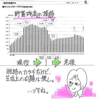 住宅取得時期によって、人生はどう変わる?かたむいた挿絵・・で、申しわけありません。 (^^ゞ( ちょっぴり、失敗しちゃいました )●顧問会員のSさん(30代) (相談:ライフプランニング)9/2(木)、シミュレーションの作成が終了。メール添付で送りました。家計の現状診断は昨年の11/30に終わっていました。今回・・シミュレーションの作成を依頼されました。生命保険を清算、レジャー費を増額修整、車の購入価格を増額修整、2年後の第2子誕生、そして、マイホーム取得! ・・です。マイホーム取得の実行時期が・・1 4年後2 60才時 ( 定年退職時 )・・の2通りののシミュレーションを作って♪と、気軽に依頼されました。 (^^ゞ 作る方は、面倒で大変・・なんですよ。 (^^ゞ ( あ・・私ではなくって、佐々木FPが )まず・・冒頭の絵が、現在のまま・・マイホーム取得をしない一生のキャッシュフロー(貯蓄残高の推移)・・です。生涯・・安心のキャッシュフローです。これを土台にシミュレーションを行ないます。マイホーム取得をすれば、一生はどのように変わるか?・・です。〇4年後にマイホームをゲット!・・した場合。土地価格が安いSさんの地元でマイホーム建築。これから子育てなので、大きめの家が必要・・。〇予算 : 3,248万円 ・土地 : 600万円 ・建物 : 2,500万円 ・諸費用 : 148万円〇資金 : 3,248万円 ・自己資金 : 2,248万円 ・住宅ローン : 1,000万円 (10年固定2%15年返済:64,350円/月)冒頭のキャッシュフローに比べると・・かなり貯蓄残高が少なくなって、ビンボーになった印象ですが、何も問題はありません。生涯を通じて・・1千5百万円から2千万円の貯蓄残高で推移します。 十分に安心な状況・・です。〇60才時点でマイホームをゲット!・・した場合。定年退職後に・・都会の?盛岡に出て住宅取得。土地代がちょっと高いので、建物予算は縮小。60才時点では夫婦だけになるし・・。〇予算 : 3,115万円 ・土地 : 1,500万円 ・建物 : 1,500万円 ・諸費用 : 115万円〇資金 : 3,115万円 ・自己資金 : 3,115万円 ・住宅ローン : 0万円当然・・現役時のキャッシュフローが潤沢になります。マイホーム取得後のキャッシュフローも、2,000万円前後で推移します。 まったく問題なし。・・ですが、「わざわざ年寄り夫婦だけになってからマイホーム取得?」・・という意見が多いのでは・・? (^^ゞメールをいただきました。 武田 様 佐々木 様 先日は新たにシミュレーションを 作成していただき、ありがとうございました。 定年後の住宅取得はズバリ、 現金一括購入!ってことですね...。 その年になってしまうと余程の理由がない限り、 現実的でないお話ですね。参考になりました。 これからも作成していただいた ライフプランニングを参考にしながら、 また時々訂正・修正をしながら、 生活したいと思います。 ご縁があって、この時期にお会いできたこと、 とてもうれしく思います。 間もなく1年間の顧問会員の期限になりますが、 住宅取得の際にはお世話になりたいと 思っておりますので、その時はよろしくお願いします。 お二人ともお体に気をつけて下さい。 ブログは引き続き、見ていますので♪今日の佐々木FP〇顧問会員のHさん(40代) (相談:ライフプランニング)現状診断資料の作成。キャッシュフロー表はできてきている・・ようです。グラフは・・これから。今・・『生命保険の加入状況と必要額』の絵を作成中です。「不要なのに、こんなに加入しています。」・・と、ビジュアルで気付かせる資料・・です。明日・・完成! メール添付で送信できそうです。〇「行列のできるFP事務所」 資料作成の順番待ちの行列。 お待たせして、大変ご迷惑をおかけしています。 本当に申しわけありません!1 Mさん(40代):現状診断 ← 回答待ち。2 Hさん(40代):現状診断 ← 今日の作業。(7/16ヒア)3 Mさん(40代):現状診断 ← 7/20 シート到着。4 Kさん(30代):現状診断 ← 7/21 シート到着。5 Yさん(20代):現状診断 ← 7/29 シート到着。6 Mさん(40代):シミュレーション ← 8/11 依頼到着。7 Sさん(30代):シミュレーション ← 8/26 依頼到着。8 Mさん(30代):現状診断 ← 8/27 シート到着。9 Fさん(50代):シミュレーション ← 9/6 依頼到着。「現状診断」 : 新規顧問会員のため、まず作成する資料。「シミュレーション」 : 顧問会員の要望で作成する資料。これは生活設計の実録日記です。・目的は「消費者の目を覚ますこと」 です。 (家計放置中の消費者の)・立場は「中立・公正」ではありません。 (極端に消費者側に片寄る)《 顧問会員希望の方へ 》 「顧問会員って何?」で支援内容や当事務所との関係を確認の上、どうぞ。⇒fpst@axel.ocn.ne.jp