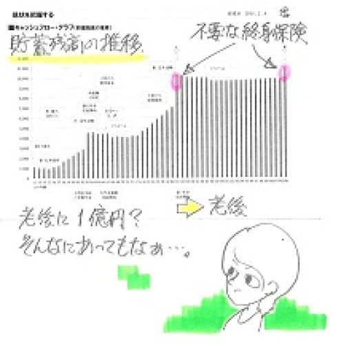 健全な家計♪⇒生命保険が不要♪⇒保険料を払わずに済む♪⇒貯蓄が増えやすい♪好循環・・です。健全な家計を築こう。生命保険は清算しよう。生命保険を清算して・・生活設計。 〇メール顧問会員のTさん(40代) (相談:ライフプランニング)今日、現状診断資料が完成! ・・しました。メール添付で送りました。すごいキャッシュフローです。老後の貯蓄残高が高止まりして減りません。生命保険は、妻は不要で、夫はあと数年で不要になります。健全なキャッシュフローなら、生命保険は不要になりやすい・・ものです。あるいは、必要であっても、その必要額は急角度で減っていきやすい・・ものです。健全なキャッシュフローを目指しましょう。T家の老後は、公的年金の他に企業年金があります。老後の貯蓄残高が高止まりして、ほぼ・・減りません。人生を終えるときに、こんな大金を遺してもしょうがありません。もっとゆとりのある生活を計画しても大丈夫そう・・です。そのT家の生命保険必要額は、時間の経過とともにどんな推移をするでしょう?縦軸が金額。横軸が年齢。(右へ行くほど年を取る)ピンクが必要額。グリーンが加入中の保障額。妻(下)は、現在も将来も死亡保障は不要です。にもかかわらず、加入しています。(もったいない・・)夫(上)は、現在1,200万円ほど必要ですが、時間の経過と共にその額は、急角度で減っていきます。50歳を過ぎれば、不要になります。以後一生・・T家では、「生命保険料」という支出をしないで済みます。グリーンの部分はすべてムダ!・・です。できるだけ早く解約!・・したい。キャッシュフローが健全なら、生命保険は不要・・という結果が出やすいもの・・です。メール顧問会員の新規受付けは、現在・・停止しています。当事務所の作業能力を越える数の新規申し込みが相次いでいます。すべて受け付けていると、行列が延々と長くなって、皆さんにご迷惑をおかけすることになるので、一旦止めさせていただいています。希望される方は、4/1以降にあらためて申込みをお願いします。先着順に受け付けます。なお、一般の顧問会員は、継続して新規受け付けしています。家計改善したい? なら・・(できるだけ)1 生命保険に加入しない!2 借金をしない!3 経費を払わない!これだけでいい。すごく かんたん。見違える人生になる。《 質問希望? 》 ブログ右上「キーワード検索」をどうぞ。「キーワード検索」に言葉 ⇒ 「このブログ内」 ⇒ 「検索」。《 顧問会員希望? 》 「顧問会員って何?」で支援内容や当事務所との関係を確認の上、右記へfpst@axel.ocn.ne.jp