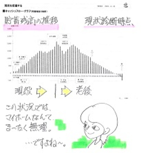 家賃を払いながらの貯金は大変だし その間の家賃のほうが捨て銭ですよね!・・って、おバカさんです。(失礼!)生活設計・・して、マイホーム取得。マイホーム取得に関して、危なっかしい質問をする人がいましたので、取り上げます。◎頭金なしでマイホーム手に入れた方◎ ※は、私の声。 主婦 32歳こんにちはよく広告に「頭金なし!」とかかいてありますが実際 マンションや建売買われた方いらっしゃいますか?建てる場合は無理ですよね・・・頭金を入れないとローンの利息が馬鹿らしいといいますが家賃を払いながらの貯金は大変だし その間の家賃のほうが捨て銭ですよね!30歳で年収600万程です 頭金なしだったかた 情報教えて下さい ※危ない、質問者・・です。こんにちは。建てる場合も、大丈夫ですよ.私の友達夫婦は、頭金+諸経費を全部ローンで、木造3階建てのマイホームを建てました。2300万の借り入れで、35年ローンだそうです。多分、2000万くらいの家(土地含む)を建てたのだと思いますが。 ※土地込みで2,000万円? ずいぶん小規模な 土地建物・・だと思います。お金がある人は、頭金なしで、家をかうなんて・・・といいますが、今は、結構そういう買い方している人多いですよね ※良くない傾向・・です。頭金ないとキツイとは、言われますが今の、金利が低いうちに購入しないと、頭金を貯めているうちに、金利が上がると、頭金くらいは金利が上がった分で、パ〜になるそうです。(不動産屋営業の方いわく) ※セールストーク、 セールストーク。 売る人の話をそのまま 受け入れる人は、 おバカさん・・です。とにかく、毎月の返済額が問題だと思うんですが、家賃と変わらないくらいでないと、しんどいですよね固定資産税もかかるので、それも含めて考えないと・・・年収600万もあるなら、余裕じゃないですか? ※年収が多いか?少ないか? ・・ではない。 毎年どれだけ貯蓄できているか? ・・が問題です。 「600万円もある」・・のに、 貯蓄が無いということは、 「=余裕がない」・・ということ。だいたい年収が500万あると、3000万、年収400万で、2500万の借り入れ可能だそうです ※借りられる金額を目安に してはいけない。 年収が「600万円もある」 ・・のに、貯蓄が無いということは、 借入可能額分を借りれば、 いつもカツカツの状態になる。 『伸びきったパンツのゴム』 ・・状態です。 いつ切れて(破たんして)も、 不思議はない。 (たとえが品がなかった・・)勤めている会社の状態や、他にローンがないか、勤続年数などの銀行の審査が問題なく通ればの話です・・・年収600万円もあって、そんなに迷うのは物件の価格の高い場所に住んでるのかな?(東京とか)。。。大阪の郊外なら、2500万円あれば新築1戸建てが建ちます。だいたい、木造3階建て、庭無し、だけど。3000万だと、2階建てで、小さな庭がついてる物件もあります・・・なぜ、私がそんなことを語れるかは同じ悩みをもっているから(笑)です。 ※質問者同様、危ない人・・です。 売る人の説明を、 何の疑いもなく、 受け入れています。我が家は頭金なしでマンション購入しました。 ※うわぁ・・。 なにが「うわぁ・・」かというと、 「頭金無しで」・・というよりも、 「マンションを購入した」 ということが ・・です。 マンションを買ってはいけない。 将来・・お荷物になる。 将来・・金食い虫になる。同じく、「家賃を払ってると思えば・・・・」感覚で買ったのですが、やっぱり利息がアホらしくてちょっと後悔してます。 ※はい、アホらしいんです。 利息負担・・って。うちもリリーさんと同じくらいの年収ですが、頭金になるくらい貯めようと思うと結構時間かかりますよね。少しでも、ご両親から無利息で借りるというのも手だと思います。っていうくらい、ホントに頭金なしだと利息はもったいないですよ〜。 ※その通り!今日の佐々木FP ※来週3/19(火)は休みます。 チビ助の小学校卒業式。 (早いものだ・・) 翌日は旗日なので、 3/19・3/20・・と休みです。〇メール顧問会員のTさん(40代) (相談:ライフプランニング)現状診断資料作成。完成! ・・しました。メール添付で送りました。すごいキャッシュフローです。老後の貯蓄残高が高止まりして減りません。生命保険は、妻は不要で、夫はあと数年で不要になります。健全なキャッシュフローなら、生命保険は不要になりやすい・・ものです。あるいは、必要であっても、その必要額は急角度で減っていきやすい・・ものです。健全なキャッシュフローを目指しましょう。【 行列のできるFP事務所 】 資料作成の順番を待っている顧問会員の行列です。 お待たせしています。大変申しわけありません! 着手から完成まで一家族当たり平均5日です。 「回答待ち」の人は、個別の事情で長引いています。 回答が戻った順番に、作業着手しています。1 Nさん(30代):現状診断 回答待ち。(7/26着)2 Nさん(30代):現状診断 回答戻る3 (9/10着)3 I さん(50代):現状診断 回答待ち。(9/11着)4 Kさん