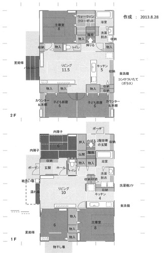 まだまだ詰めるべきことがたくさんあります。自分の頭で考える・・生活設計。〇顧問会員のAさん(20代) (相談:生活設計・マイホーム建築)親世代との2世帯住宅の取得、作業進行中・・です。今日までの・・会っての打ち合わせ、メールでのやり取り、電話でのやり取り、・・などの結果、プランが煮詰まってきています。以下は・・2013.8.28 時点のプラン・・です。完全分離の2世帯住宅です。住宅会社はまだ決めていませんが、5社程度に見積もり依頼します。そのプレゼン・コンペは、9/23、〇〇児童センターに決定!(発注側が4人なので、いつもの 当事務所では狭すぎます)日時も会場も決めてかかります。ちなみに会場代は・・9時から17時まで一日借りて、タダ! ・・無料です。公共施設は積極的に利用しましょう。さあ! まだまだプランの細部を詰めていきます。さらには・・・土地への配置・外構工事・作り付け収納家具 (いっぱぁい・・ある!)・仕上げ表 これらの絵のすべてがそろって、初めて各住宅会社へ見積もり依頼ができる状態です。がんばれ 武田!がんばれ! がんばれ!Aさんのマイホーム:進行状況 0 ヒアリング 2/19 1 家計の現状診断・問題点把握 3/12 2 ライフプランニング(生活設計) 5/15 3 資金・ローンの目安を立てる 7/4 4 土地探し・土地売買契約8/14 5 展示場ほか見学 6 事前手続き・住宅プラン検討・作製 7 住宅会社・数社が提案競争 9/23 8 業者決定・請負契約 9 事前手続き・地鎮祭 10 着工 ・ 上棟 11 完成・入居 12 住宅ローン返済開始家計改善したい? きちんと生活設計したい?なら・・(できるだけ)1 生命保険に加入しない!2 借金をしない!3 経費を払わない!これだけでいい。すごく かんたん。 見違える人生になる。 《 質問希望? 》 ブログ右「キーワード検索」をどうぞ。「キーワード検索」に言葉 ⇒ 「このブログ内」 ⇒ 「検索」。《 顧問会員希望? 》 「顧問会員って何?」で支援内容や当事務所との関係を確認の上、右記へfpst@axel.ocn.ne.jp行列が長くなり過ぎているので、当分の間メール顧問会員の受付けは停止します。 (一般の顧問会員は、常時受付けています)