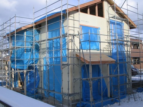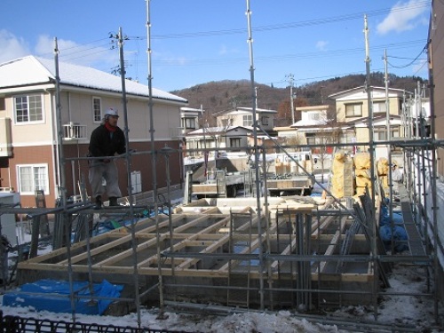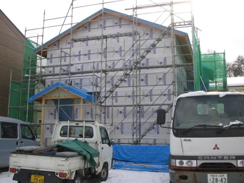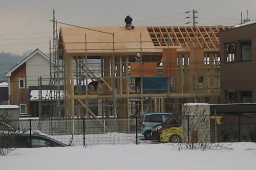 毎日寒い・・盛岡です。自分の頭で考える・・生活設計。軍師官兵衛・・。〇顧問会員のAさん(20代) (相談:生活設計・マイホーム建築)1/7(火)に上棟した後、建物の側はすっかり覆われました。以下は、2014.1.15.(水) の現場。今日も盛岡は寒い! (建物北側)壁はすっかり覆われました。・・が、それでも寒い。お昼休みの現場で大工さんたちは、エンジンをかけた車の中で暖を取っていました。(建物南側)(建物南西側) Aさんのマイホーム:進行状況 0 ヒアリング 2/19 1 家計の現状診断・問題点把握 3/12 2 ライフプランニング(生活設計) 5/15 3 資金・ローンの目安を立てる 7/4 4 土地探し・土地売買契約 8/14 5 展示場ほか見学 6 事前手続き・住宅プラン検討・作製 9/10 7 住宅会社・数社が提案競争 9/23 8 業者決定・請負契約 9/28 9 事前手続き・地鎮祭 11/16 10 着工 12/2 上棟 2014.1.7 11 完成・入居 2014.3.? 12 住宅ローン返済開始《 質問希望? 》 ブログ右「キーワード検索」をどうぞ。「キーワード検索」に言葉 ⇒ 「このブログ内」 ⇒ 「検索」。《 顧問会員希望? 》 「顧問会員って何?」で支援内容や当事務所との関係を確認の上、右記へfpst@axel.ocn.ne.jp一般の顧問会員は常時受付けていますが、メール顧問会員は当分の間、受付けを停止します。