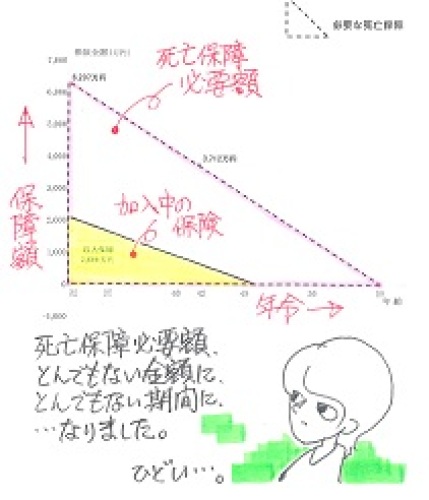 頻繁にメールを頂く2人から、また、メールが・・。(^^ゞ自分の頭で考える・・生活設計。 〇メール顧問会員のMさん(40代) (相談:ライフプランニング)現状診断はすでに終えていて、(悲惨なものでしたが・・)現在、生活設計シミュレーション中。現在の住宅ローンは変動金利です。変動金利ローンでは生活設計のしようがありません。(当たり前)まず、住宅ローンの借換えをして、生活設計が可能な状況作りが必要です。 ※以前の記事参照。 変動金利のままでは 生活設計ができません 住宅ローン借り換え 手数料が倍なので除外した? 住宅ローンの金利優遇率が少し減るという解釈で ※上のグラフが、現状診断時点。 悲惨・・。 下は、本人が作成した家計改善グラフ。メールをいただきました。武田様連日のコメントありがとうございます。またメールが来た!とがっかりしないで下さいね(^^; ※また来た! (^^ゞ本日は質問ではなくご報告だけなので、メールさせていただきました。 ※ ほっ・・♪昨日のコメントと過去の住宅ローンの記事を読み返し、十分理解できました。 ※よかった、よかった。 「キーワードサーチ」は 役に立つでしょ?同じようなことを質問してお手間をかけてしまったと反省しております。以前にも記事は読んでいましたが、いざ自分のこととなったら、何となく急いで決めなければならないような気がして・・・リサーチ不足でした。また、私は「当初引下げ」「当初期間重視」といったキャンペーン用語に不信感があったので(笑)、シンプルな金利だけを探していましたが、武田様のご指摘の通り、結局10年間どれくらいの金利で貸してくれるのか?をシンプルに判断すれば良いとわかり、選択肢が広がりました。 ※金融機関のキャンペーンなどで、 お得な感じがする言葉に 振り回されてはいけません。 「結局、おたくの銀行は、 金利いくらで貸してくれるの?」 その結論部分だけ確認して、 シンプルに複数の金融機関を 比べっこしましょう。さっそく2行に仮審査を申し込みました。1 10年固定金利1.10% 借入期間30年2 10年固定金利1.18% 借入期間30年審査が通りましたらまたご連絡いたします。(・・・という流れでよろしいのでしょうか?) ※あれ・・? 質問・・する? 「本日は質問ではなくご報告だけ」 ・・って、最初に言ってたよ。 はい、はい、 いいんじゃ・・ないでしょうか。 ずいぶん低金利なところを 見つけてきたようです。 (最初に決めようと した銀行は高かった・・) これで、賢く、間違いなく、 選択できそうです。 やればできる!〇メール顧問会員のKさん(30代) (相談:ライフプランニング)1/24に、現状診断が終了!このままでは人生が成り立たない、そんなキャッシュフローになりました。教育費がかさむ時期に資金不足に、老後も一時期、資金不足に・・。その後、色々対策を・・。 ※過去記事参照。 1/25 現状のままでは成り立たない人生 どうする? 1/29 生命保険必要額計算 加入中の保険は混ぜるな 2/13 団信代わりと本来死亡保障を足し算するおバカ 2/16 三角形の保険2個で団信代わりと本来の死亡保障 これからの人生に、2度のピンチが訪れます。生命保険。夫は大きく過剰加入しています。K家では、住宅ローンを返済していますが、団信に加入していません。なので、団信の代わりに生命保険に加入する必要があります。さらには、本来の死亡保障のために生命保険に加入する必要があります。団信代わりは大きな保障額・長い期間の三角形の保険、本来の死亡保障は小さな保障額・短い期間の三角形の保険、・・のように、2つの三角形の保険に加入すれば、保険料(失うお金)が最も少なく済みます。(保険屋にだまされないよーに)下は、Kさん作成の死亡保障グラフに私が着色し、言葉を添えたものです。黄色い三角形が団信代わり、ピンクの三角形が本来の死亡保障。(一般的には・・もっと短期間になる)メールをいただきました。武田さまお世話になっております。保険について色々と教えていただき本当にありがとうございました。とてもとても勉強になりました、その後順調にすすんでおります。住宅ローンの借り換えについて教えてください。借り換えについては考えていなかったのですが武田さんのブログと、主人の一言で、もしかして借り換えたほうがいいのかな?と思いました、保険でいっぱいだった頭に次は住宅ローン…何かヒントになることがあれば教えてください。今から調べてみようと思います。 ※はい、自分で調べてみてください。 このような具体性の無い バフゥ~っとした内容で、 「教えてください」 とは、言わないでください。(^^ゞ まず、自分で調べる! キーワードサーチを利用する! ブログのトップ画面右上に、 「キーワードサーチ」があります。 「キーワード検索」に 「住宅ローン借り換え」と入力して、 すぐ「検索」をクリック! ・・しては、いけません。 銀行など「売る側」の情報が これでもか!・・と出てきます。 なんの役にも立ちません。 「住宅ロー