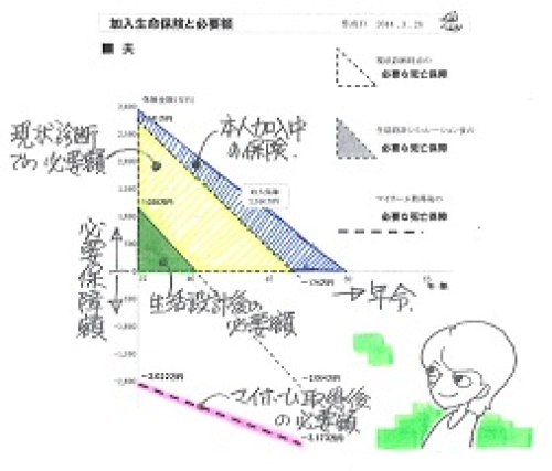 マイホーム取得シミュレーションをしたら、生命保険はまったく不要になりました。(よくあること・・です)自分の頭で考える・・生活設計。軍師官兵衛・・。〇メール顧問会員のTさん(30代) (相談:ライフプランニング)12/19 に現状診断が終了!家族:3人。 夫30代会社員。妻30代。幼児。 住まい:賃貸。 貯蓄:1,610万円。まず、生活設計をした上で、マイホーム取得をすれば、どのような人生になるか・・?シミュレーションしてみました。『長く借りて短く返す!』人生最大の買い物であり、人生最大のリスクを背負うことになります。途中で何かがあっても対応できるよう、返済期間を長く設定することで、返済負担を軽くなるよう計画しましょう。現在の家賃よりも少ない返済額に設定しました。返済しながら・・なお、継続して貯蓄ができるよう。キャッシュフローはきれいです。何の問題もありません。70歳過ぎに完済する借り方ですが、このキャッシュフローを見れば、積極的な繰上返済で、現役中の完済が可能なことが分かります。最悪でも定年退職時に完済できます。で・・当然のことですが、マイホーム取得をすれば、普通は団信に加入しますから、死亡保障必要額は当たり前に減ります。Tさんの場合は、生命保険はまったく不要になりました。(現在も将来もまったく不要!)本人は三角形の保険で保障総額約3,000万円を確保していましたが、(青い部分)もう・・現状診断時点で、「そんなに要らないよ。」・・ということになり、(黄色い部分)さらに・・生活設計してみたら。「保障はもっともっと少なくていいよ。」・・ということになり、(緑色の部分)マイホームを取得したらどう?「もう、逆立ちしたって要らないよ。」「現在も将来も要らないよ。」・・ということになりました。(ピンクの線)マイホーム取得する時にまず最初にすることは、生命保険の清算!・・です。家計をきちんと整理整頓してから、人生最大の買い物をしましょう。家計をきちんと整理整頓してから、人生最大のリスクに立ち向かいましょう。家計改善したい?きちんと生活設計したい?なら・・(できるだけ)1 生命保険に加入しない!2 借金をしない!3 経費を払わない!これだけでいい。すごく かんたん。 見違える人生になる。【 行列のできるFP事務所 】 ※3月の佐々木FP 3/28(金):13時までで早退。 3/31(月):休み。 シートの記入方法等の質問の ある方は、ご注意ください。《 現状診断 》 佐々木FP1 Nさん(30代):回答待ち。(4/12着)2 Eさん(30代):回答待ち。(6/19着)3 Mさん(40代):3/26回答戻る。(5/2着)4 Mさん(30代):今日の作業。(8/1着) ※再着手しました。5 Kさん(30代): 回答待ち。(8/5着)6 I さん(30代): 回答待ち。(8/28着)7 Kさん(40代): 回答待ち。(9/7着)8 Sさん(30代): 3/27回答戻る。(11/8 着)9 Kさん(30代):3/24回答戻る。(12/26着)10 Nさん(40代):12/26 依頼着。11 Aさん(40代):12/28 依頼着。12 Mさん(30代):12/29 依頼着。13 Kさん(30代):1/9 依頼着。14 Mさん(40代):1/9 依頼着。15 Kさん(50代):1/10 依頼着。16 Tさん(30代):1/21 依頼着。17 Aさん(30代):1/25 依頼着。18 Sさん(20代):1/31 依頼着。19 Yさん(40代):1/31 依頼着。20 Oさん(30代):1/31 依頼着。21 Mさん(30代):2/7 依頼着。22 Kさん(30代):2/10 依頼着。23 Kさん(40代):3/3 依頼着。24 I さん(30代):3/4 ヒアリング。25 Mさん(20代):3/21 依頼着。26 Kさん(40代):3/27 依頼着。《 生活設計シミュレーション 》 武田FP※毎日ブログ記事を書きながら、 資料作成作業を行なっています。1 Kさん(30代):住宅取得。回答待ち。(10/12着) ※その後の生命保険データが必要。2 Tさん(30代):住宅取得。今日の作業。(1/30着) ※マイホーム取得シミュレーション 本日完成! 住宅取得しても、 まったく問題の無い人生です。 生命保険はまったく不要になりました。 メール添付で送りました。 ⇒今日の記事。3 Mさん(40代):生活設計。回答待ち。(2/19着) ※住宅ローン借り換え後のデータ待ち。4 Eさん(30代):住宅取得。(3/18ヒアリング)5 Kさん(30代):マイホーム取得。(3/19着)6 Sさん(40代):子ども誕生。(3/25着)《 質問希望? 》 ブログ右「キーワード検索」をどうぞ。 「キーワード検索」に言葉 ⇒ 「このブログ内」 ⇒ 「検索」。《 顧問会員希望? 》 「顧問会員って何?」で支援内容や当事務所との関係を確認の上、右記へfpst@axel.ocn.ne.jp一般の顧問会員は常時受付けていますが、メール顧問会員は当分の間、受付けを停止します。
