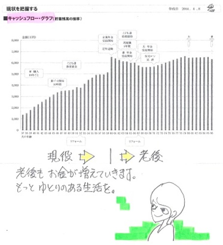 その会社に縛られたまま、その会社で建てることになり、数百万円も高い買い物になる。マイホーム取得では、そんなことをしてはいけない。市場原理が働かない状況での買い物は、確実に損をします。住宅建築の場合は、少なくても数百万円の損になる。(当事務所がお手伝いしている 顧問会員のマイホーム建築、 プレゼンコンペの結果より・・)自分の頭で考える・・生活設計。生活設計とマイホーム取得の、関連記事。〇メール顧問会員のMさん(30代) (相談:ライフプランニング)4/2、現状診断が終了。家族:4人。 夫30代会社員。妻30代会社員。 幼児と赤ちゃん。 住まい:賃貸。(家賃:8.8万円) 貯蓄:470万円。 負債:車ローン 100万円(3年返済) 返済月額28,500円 残68.4万円 (車を借金で買ってはいけない!) 『貯蓄利息<借金利息!』生命保険料 : 18,804円/年 収入保障保険(夫):2,088万円・14.5年 死亡保障必要額 検証結果 : 現時点 10年後 夫 -918万円 -1,668万円 妻 -2,303万円 -2,055万円 -(マイナス)は不要ということで、 夫婦ともに現在も将来も不要! 生命保険料という支出が、 まったく不要な家計です。 (ますますお金が貯まります) まともな家計なら、 (夫:フルタイム、妻:パート、でも) だいたい同様の結果になります。 「生命保険に加入するのは当たり前」 ・・と思っていると、 生涯で大金をたれ流します。 保険会社や代理店やマスコミ等に だまされないように・・。メールをいただきました。(有)エフピー・ステーション 武田様・佐々木様メール会員 Mです。現状診断ありがとうございました。GW中にじっくりと読ませて頂きました。とりあえずこのままいけば破産はなさそうな診断で とりあえずはホットしました。マイホーム取得について質問なのですが諸々含め総額8000万円以内に収まれば とありますが ※生涯の住居費総額が 8千万円以内に納まれば、 現在の生活レベルのままで 住宅取得が可能・・です。 マイホーム予算(住居費)は 「土地代+建築費」では済まない。 生涯の「住居費」総額は以下の合計。 「土地代+建築費 +諸費用+ローン利息 +固定資産税総額+リフォーム代」 建売より土地+建物購入のほうが納得いく家ができそうなので その方向で探していますが ※一般的には、一生に一度の 大きな買い物です。 できれば・・出来合いのものより、 自分で自由に考えたい。やはりネットなどで地元の工務店さんを探すのがいいですよね? ※生活設計の観点からは・・ 以下の住宅会社は 経費がかかり過ぎて高いので、 選択肢からはずしたい。 ・営業マンがやたらに多い。 ・広告やチラシを頻繁に見る。 ・展示場をかかえている。 上記のような業者以外の 地元業者をネットで探しましょう。小さな工務店も含めると結構な数がありますが自分で訪問するなどして見極めていこうかと考えています。 ※まったくの素人の状態で、 こちらから訪問して歩くのは、 できれば避けたい。 (飛んで火に入る夏の虫・・に なる) 初期段階では・・ ネットで業者の特徴を確認、 電話でさらに詳しく確認、 しながら、 候補業者を絞り込みたい。土地選びが地域をしぼってもとても難しいですね… ※土地探しを建築業者に 依頼してはいけない。 熱心に繰り返し繰り返し 情報を持って来られて、 仮に気に入った土地があれば、 その業者で建てざるを得なくなる。 (業者選択の余地が無くなる) 土地探しは直接不動産業者へ。 複数の不動産業者に依頼する。 建築条件の無い自由な土地を、 3~5社に相談。 不動産業者も建築業者も、 複数と会話をしていけば、 まったくの素人の状態からは 徐々に脱出できる。 土地を決めるのも、 建築業者を決めるのも、 ある程度・・ 自分たちの目が肥えてから にした方が、後悔しないで済む。 動き始めてすぐ、 何らかの決定をしてはいけない。実際に武田様に現場を見てもらえる距離にないのがつらいとこです… ※残念ながら遠い・・です。購入の時期ですが頭金を貯めてからのほうが良いことは わかっているのですができれば長男の小学校入学までには引っ越しを終えたいなという希望を持っています。ですがそれまでに完成と考えると あと4年程位しか頭金を貯める年数もありませんし ※キャッシュフロー表から・・ その時点の貯蓄残高は、 1,200万円ほど・・です。 予算がどうなるか分かりませんが、 自己資金を1,000万円出せそう だし、不可能ではありません。いっそそこにこだわらず もっと頭金を貯めて10年後位をめどに購入を考えたほうがいいのか迷っています… ※10年後の貯蓄残高は・・ 同じく1,897万円です。 子どもたちは2人とも 小学生になっています。現在2LDKなので4人家族になり狭くなるのも想定しています…武田様・佐々木様は どちらがいいと思われますか? ※どっちでも不可能ではない。 ご自由に・・。もちろん頭金が多ければ自分たちが楽になるのはわかっている のですが長男の小学校が多分転校に なってしまうので悩んでいます… ※なぜ悩むのか、分からない。アドバイス頂けるとありがたいで