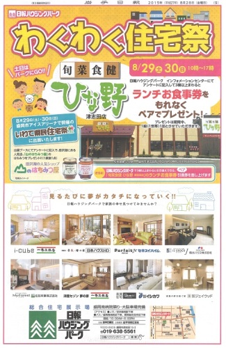 お食事券をもらっても、展示場業者で建ててはいけない。業者選びは自分の頭で考えよう。自分の頭で考える生活設計。『 新聞広告を読む 』 ※消費者の視点。日報ハウジングパーク『わくわく住宅祭』ランチお食事券をもれなくペアでプレゼント!2015/8/28 の新聞広告。数十年前から盛岡にある大型展示場です。何が大型 ・・かって、一般庶民は決して建てられないサイズや設備や仕上げの建物ばかりが並んでいます。大型・・です。 現実離れしています。ここに出展している住宅メーカーは、建築費が確実に高い!・・です。今回プレゼントされる「お食事券」の代金は、だれが負担するのでしょうか?もちろん、これらの業者で建てる人です。建築費に上乗せで負担します。(当たり前)このような催しでかかる費用は、これから建てる人が負担します。建築費に上乗せで負担します。(当たり前)それくらいは大したことない・・?今回の広告だって大きな費用がかかっています。だれが負担するんでしょうか?もちろん、これらの業者で建てる人です。建築費に上乗せで負担します。(当たり前)そのようなことだけではない。住宅展示場業者の建築費が突出して高い理由はいくつもある。 また、新聞社やテレビ局等のマスコミも、 中立だ・・なんて、勘違いしてはいけない。 この展示場のように、 新聞社名を「冠(かんむり)」にして 運営するケースはよくある。 住宅に限らず、業界とマスコミは 持ちつ持たれつ・・だということは、常識だ。 「新聞なんだから、立場は中立でしょう。」 なんて、のんびりしていてはいけない。 業者あってのマスコミ・・だ。住宅展示場業者の建築費が高い理由。 展示場業者の共通点。1 展示場を運営している。2 営業マンが多い。3 頻繁な宣伝広告。4 豪華なカタログやチラシ。 当然・・余分な経費分、高くなる。1 展示場運営費 ・・だけでは済まない。 もっとケタ違いに多額な、 建築費!や解体費!2 人件費 営業マンその他の 直接建築と無関係な人の人件費!3 宣伝広告費4 カタログ製作費これらの経費を負担するのは、 当然・・建築する消費者。一般的なサイズの家・・1棟で、 数百万円も余分に払うことになる。ちなみに・・適正価格で建てることが可能な業者の外観は、以下のようです。 (だいたいは、地元の工務店)1 展示場を運営しない。2 営業マンはいない。3 宣伝広告をしない。4 立派なカタログは無い。すべてあてはまっても、 以外に高い業者もいたりする。 (過去のコンペでとんでもない業者がいた)・・ので、やはり契約直前までの徹底比較は必要・・だ。これらの業者をどうやって発見するか?ネットで探そう。 簡単に見つかる。どうやって声をかける? 後で断りにくくならない? 当初から競合であることを伝えよう。 複数の業者に相談していることを伝えよう。3~5社を比較検討しよう。「申しわけないんですが、最後に お断りすることになるかもしれない ・・んですけど、色々 教えてもらっていいですか?」・・と、初期段階で話した上で、 具体的な相談をしよう。 彼らも受注はしたいが、 最終的に断られることがあることも、 了解している。それでもなお、 素人の場合は・・打ち合わせをしても実物を見ないと具体的なイメージが難しいと思われるので、 展示場は積極的に利用させてもらおう。『展示場業者では絶対建てない!』・・という強い意志を貫きながら。【 業務日記:行列のできるFP事務所 】 【 佐々木FP 】 ※今月の佐々木FP。 8月28日(金)と31日(月)は、 お休みをいただきます。 電話質問等ある方はご注意下さい。 《 事務所会計作業 》 《 現状診断☆ & 生活設計★ 》1 Yさん(40代):☆12/29回答待ち。(10/10着)2 Kさん(20代):☆1/14回答待ち。(11/4着)3 Kさん(30代):☆2/6回答待ち。(11/25着)4 Sさん(30代):☆7/8回答待ち。(7/4 着) ※8/28 再ヒア 回答戻る。 お世話になっております。 再ヒアリングシートを お送り致します。 ファイルが開けない場合は またご連絡頂けませんでしょうか。 お手数ですが宜しくお願い致します。5 Kさん(30代):☆7/24現状診断 依頼着 ※作業途中。 現状診断終了予定は、 来週火曜日(9/1)です。 お楽しみに・・。6 Oさん(30代):☆7/27現状診断 依頼着。7 Hさん(30代):★7/29生活設計 依頼着。8 Sさん(20代):☆7/30現状診断 依頼着。9 Mさん(30代):☆7/31現状診断 依頼着。10 Hさん(30代):☆8/10現状診断 依頼着。11 Sさん(30代):☆8/18現状診断 依頼着。12 Mさん(30代):★8/27生活設計 依頼着。13 Nさん(30代):☆8/27現状診断 依頼着。 プレゼントするのは「汚職事件」ではなくって「お食事券」 ・・っと。『 商品販売をしない。しがらみも無い。 』消費者側に立つ FP事務所です。《 質問希望? 》 ブログ右「キーワード検索」をどうぞ。「キーワード検索」に言葉 ⇒ 「このブログ内」 ⇒ 「検索」。《 セミナー講師? 》 2時間3万円(+税・交通費)。 銀行・保険・住宅会社等に振り回されない生活設計。 消費者側に立った内容の講演。 講師をお受けします。 《 顧問会員希望? 》 「顧問会員って何?」