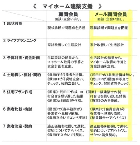 メール顧問会員の住宅建築を遠隔操作で支援しようと案を練ってきています。以下に提示しますので、興味のある方は、ご意見、ご感想を・・。自分の頭で考える生活設計。一般会員とメール会員の違い。マイホームの建築支援。一般顧問会員とメール顧問会員の違いを、まず理解してください。なお、生活設計の内容を記事として掲載しているのと同様に、建築支援の内容も記事掲載することを承諾してもらうのが条件・・です。「いっさい記事にしないでください。」・・という場合は、お受けできません。成功報酬ではなく、期間報酬。で・・料金がどのようにかかってくるか?表で確認してください。一般顧問会員の支援では、建築契約後に成功報酬(契約額の5%)を、コンペを勝ち抜いた業者から頂きます。メール顧問会員への支援では、そういうことはできないので、成功報酬ではなく、アドバイスする期間(1年)の報酬にすることを考えています。期間の最初にいただきます。「コンサルティング契約」等の書類の準備も考えています。メール会員の支援料金は、 ・土地購入:10万円+税 ・住宅建築:30万円+税大変に手間ひまのかかる作業になります。 土地は次々と出てくる候補地の 一つ一つをチェックして、 メリット・デメリットを指摘します。 延々と決まらない可能性もあります。 建物は、まったく同じ条件で 各建築業者にプレゼンさせるために 必要な資料作成を行なっていきます。 後から「それはオプションです。」 なんて言わせない、 入居して生活できる状況までの 資料作成を行ないます。 なので・・当然、外構工事や 造り付け収納や作り付け家具まで 資料化して、見積もり・プレゼンさせます。 途中で大きくプランが変わったり、 最終決定するまで、かなりの時間 (月日?)を要すのが普通です。できるだけ安くしてあげたいんですが、あまりにも安いと業務に支障をきたします。ぎりぎり、この金額なら何とかなるか、という設定のつもりです。建築だけの場合は、32.4万円。土地からの場合は、43.2万円。(生活設計の年間顧問料:3.6万円を除く)自分で建築業者と折衝して建築する場合より余分に払う(ように見える)お金は、32.4万円。自分で不動産業者と折衝して土地を買い、自分で建築業者と折衝して建築する場合より余分に払う(ように見える)お金は、43.2万円。こんなにお金を払うのはもったいない、そう思う方はどうぞ、おやめください。(一けた上の金額を失うかもしれませんが)ま・・当事務所の立ち位置からして、ビジネスとして行なうつもりは無いので、無理にはお奨めしません。あくまで、自ら希望する方のみ、ご質問、ご意見、ご感想、ご要望をどうぞ。徐々に具体化していきます。お楽しみに・・。 【 業務日記:行列のできるFP事務所 】 ※行列掲載記事は、タイトルに★印。 【 佐々木FP 】《 事務所会計作業 》 《 現状診断☆ & 生活設計★ 》1 Tさん(30代):☆12/11再ヒア待ち。(11/24着)2 Iさん(30代):☆2/10再ヒア待ち。(12/31着)3 Uさん(40代):☆1/8 現状診断 依頼着。 ※今日の作業。 大変長らくお待たせしました。 整理整頓 終了予定は、 明日・・2/19(金)です。 お楽しみに・・。4 Iさん(30代):★1/12 生活設計 依頼着。5 Kさん(30代):★1/25 生活設計 依頼着。6 Wさん(30代):☆1/26 現状診断 依頼着。7 Kさん(20代):☆1/29 現状診断 依頼着。8 Sさん(20代):★2/5 生活設計 依頼着。 ※だいぶ、行列が短くなりました。 (佐々木FP、快調に飛ばしています) これから並ぶ人は、ラッキーです。 比較的早く順番が巡ってきます。 早く仕上げて並びましょう。 がんばれ! がんばれ!メール会員の建築支援 ・・っと。〇 商品販売をしない。 〇 しがらみを持たない。誇りをもって、愚直に、 消費者側に立ち続けて15年目の ファイナンシャル・プランナー事務所。 《 質問希望? 》 ブログ右「キーワード検索」をどうぞ。 「キーワード検索」に言葉 ⇒ 「このブログ内」 ⇒ 「検索」。 《 顧問会員希望? 》 「顧問会員って何?」で支援内容や当事務所との関係を確認の上、右記へfpst@axel.ocn.ne.jpメール顧問会員は、指定した月日のみに受付けます。