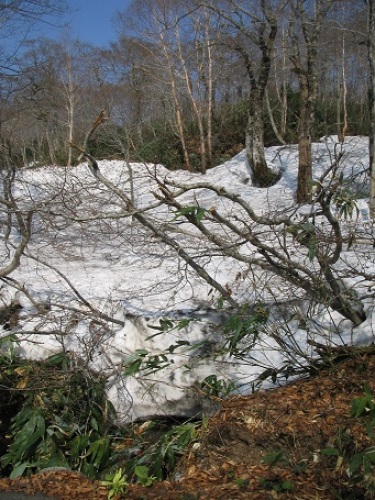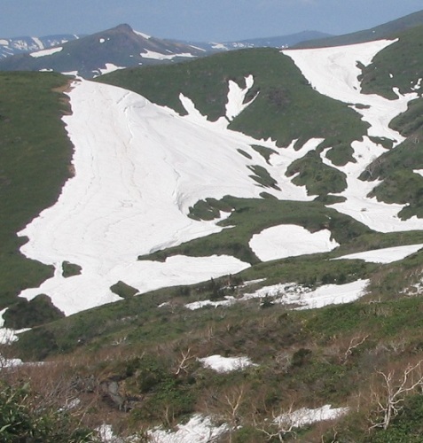短パン・Tシャツで楽しめる、夏スキー・・の景色です。