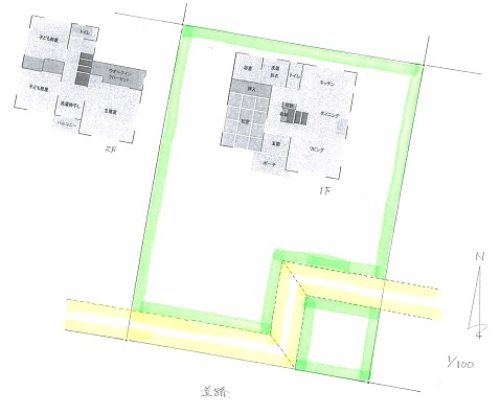 写真の土地に建てると、こんな感じです。