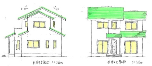 「立面スケッチを手書きで作成しました。」
