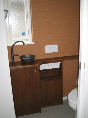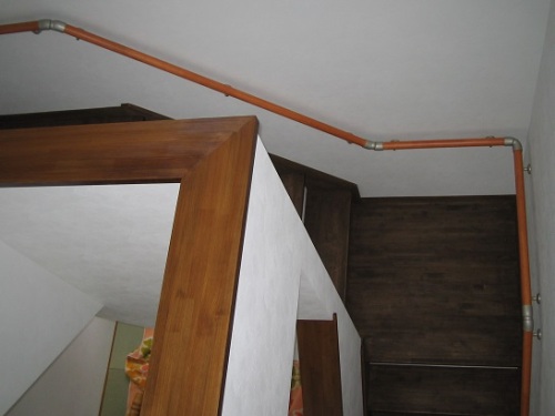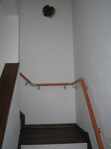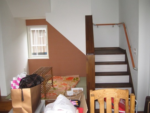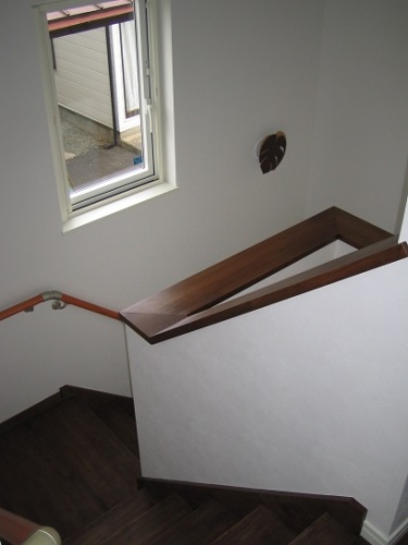 2階廊下から見下ろす階段・・。 左下は畳コーナー。![]()