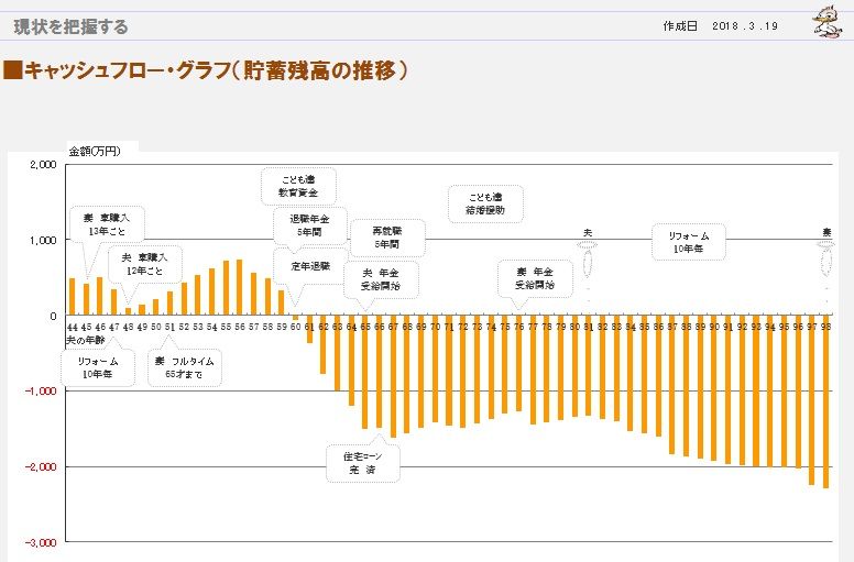 一般的なキャッシュフロー(CF:貯蓄残高の推移)では、