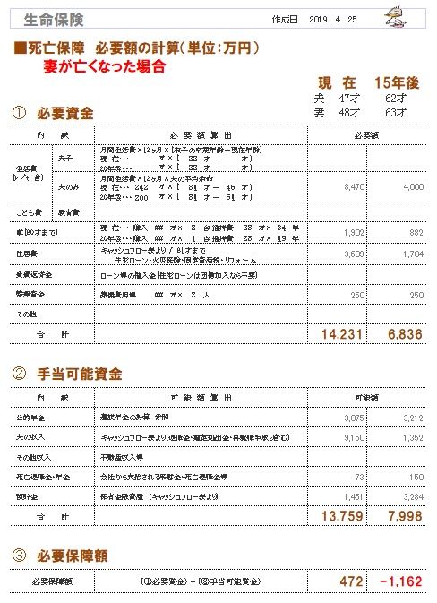 ※死亡保障必要額の計算根拠です。(妻)