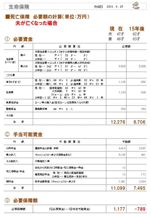 ※死亡保障必要額の計算根拠です。(夫)