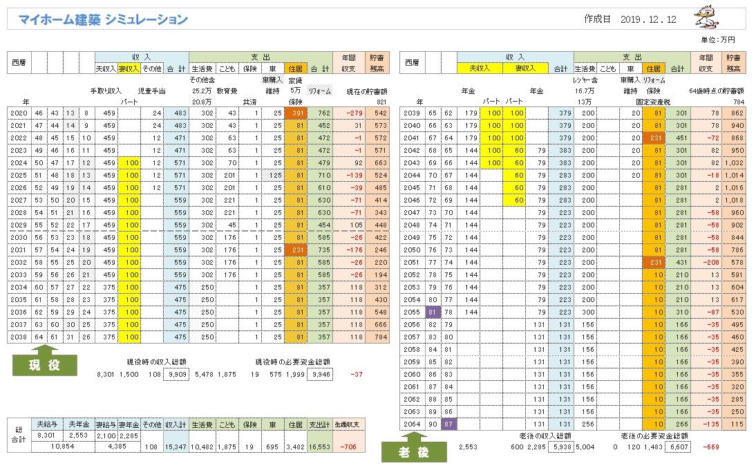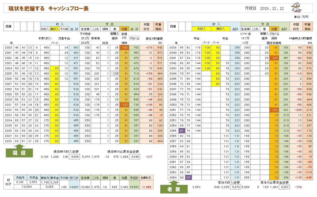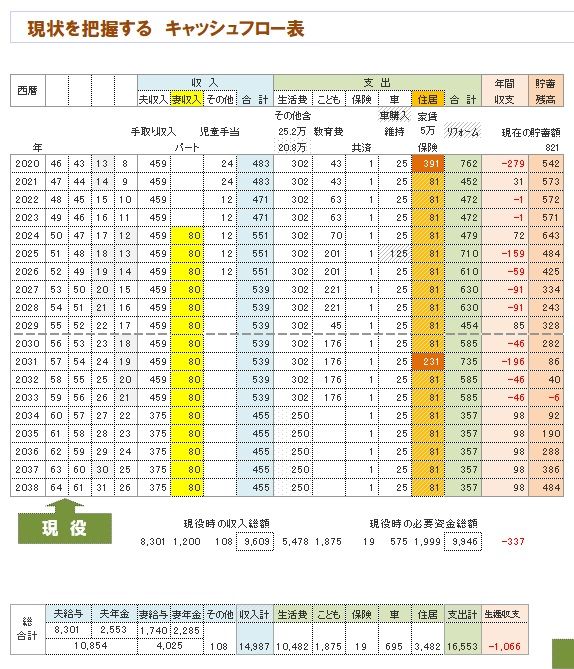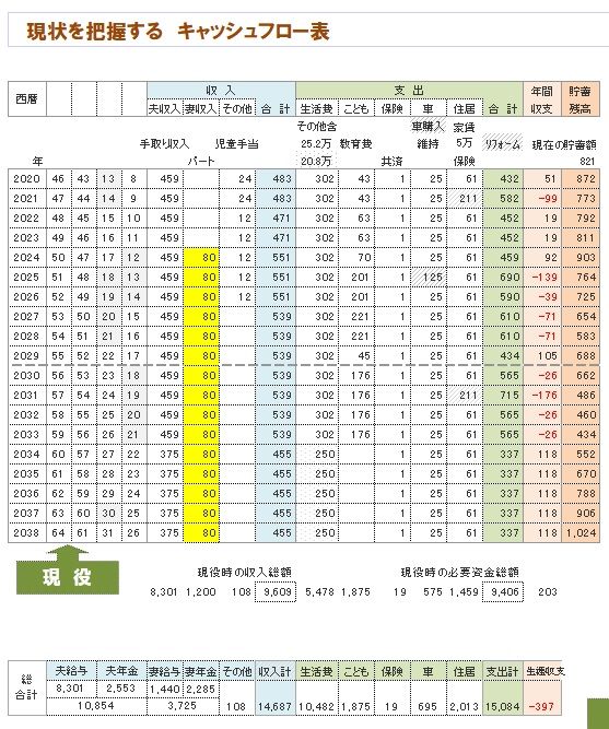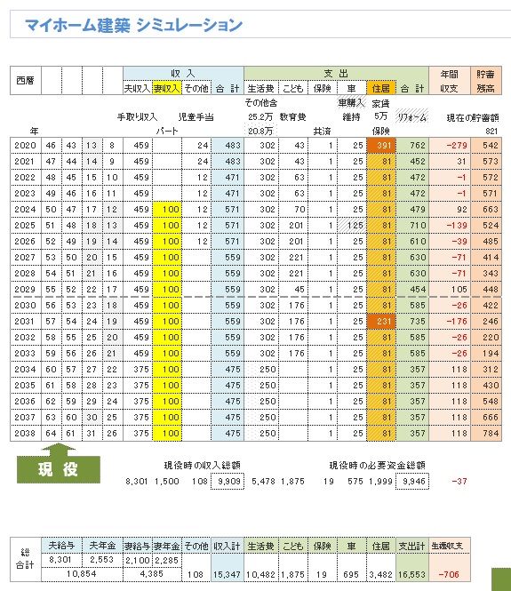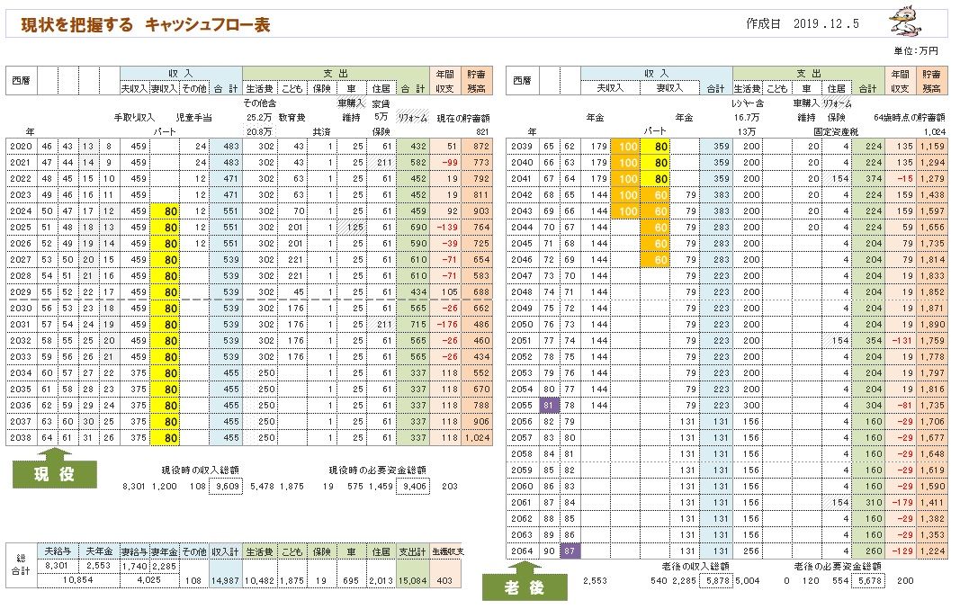 ​​​​ ​​​    ※マイホーム取得を載せたキャッシュフロー表。