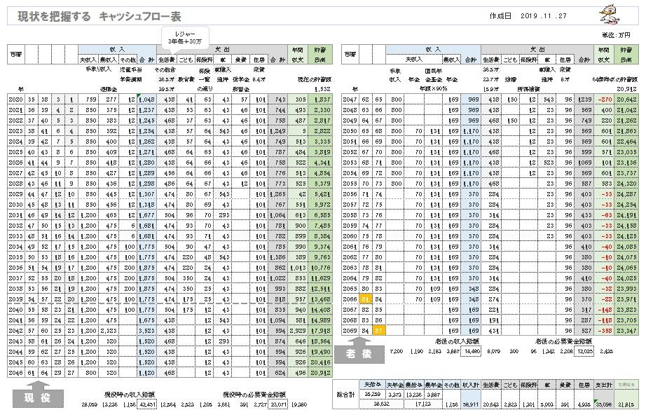 ※キャッシュフロー表は老後だけでなく、