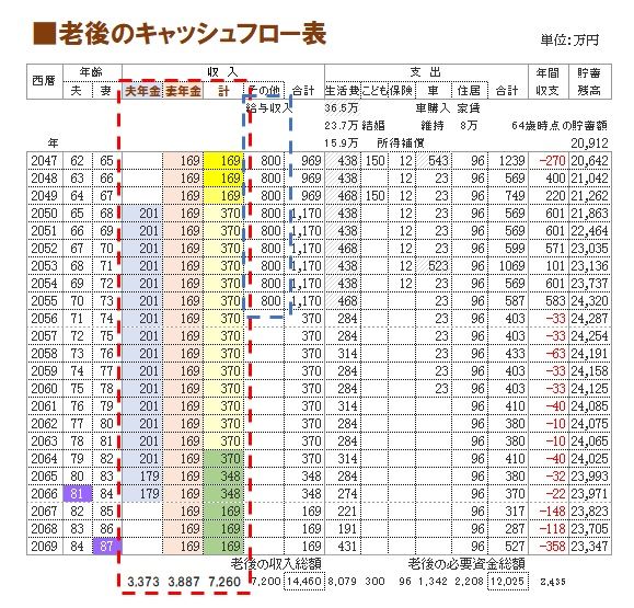 上記の年金額をキャッシュフロー表に忠実に