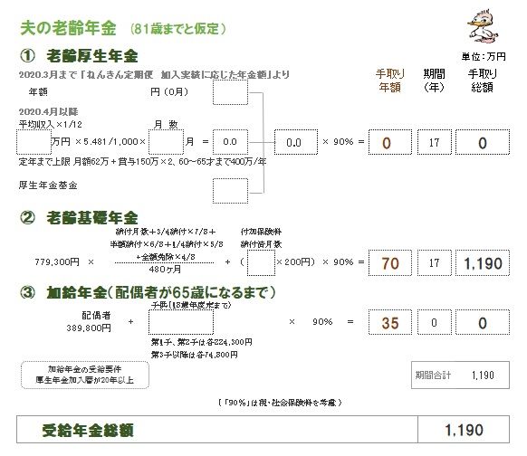 現役も含めた・・生涯の表を作成しましょう。