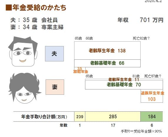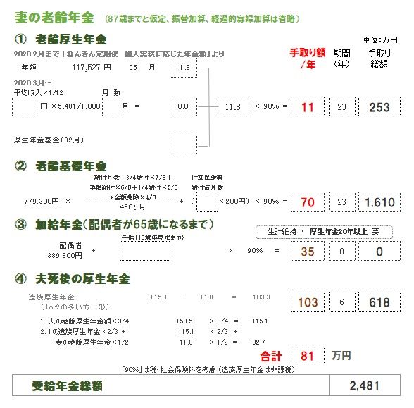 ご主人の遺族年金=老齢厚生年金*3/4≒年額65万円程度?